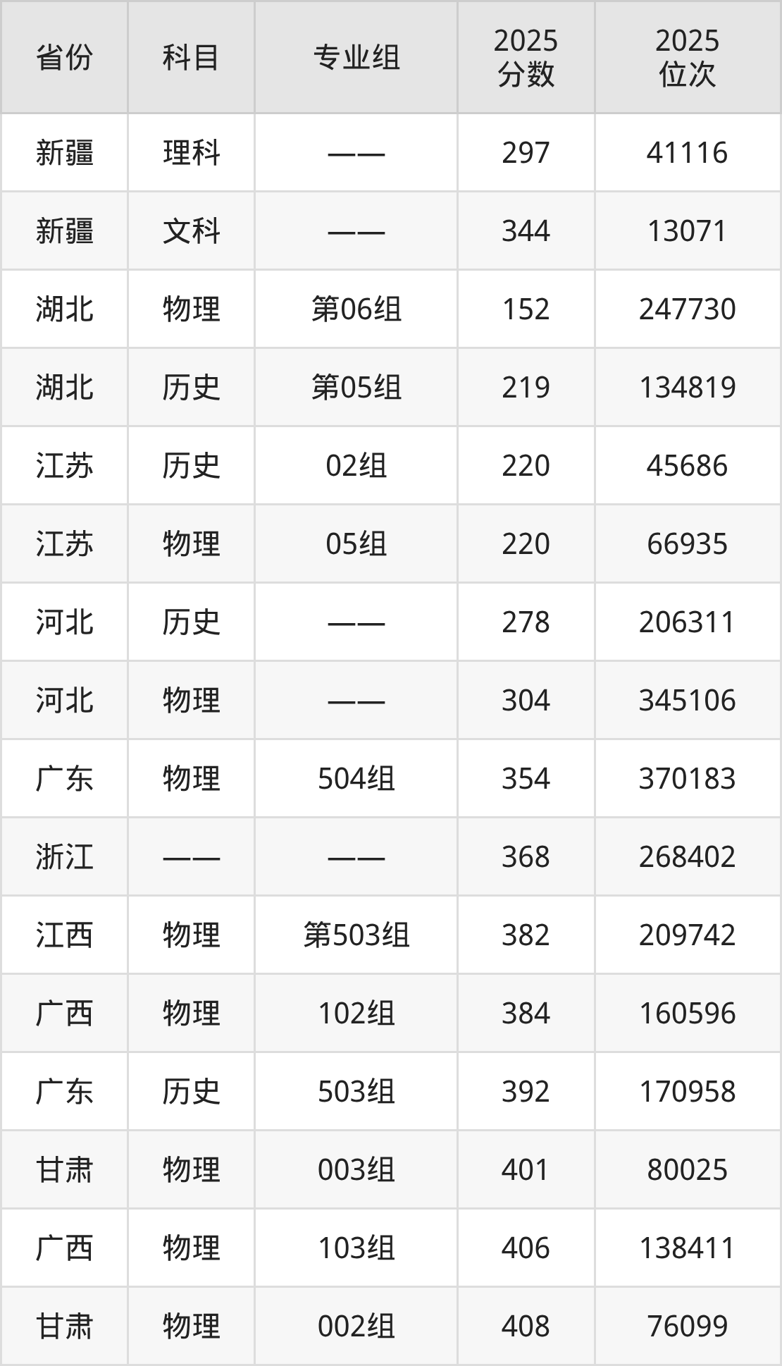 文科:2025年武汉东湖学院录取最低分是344分(新疆),对应的位次排名是13071名。