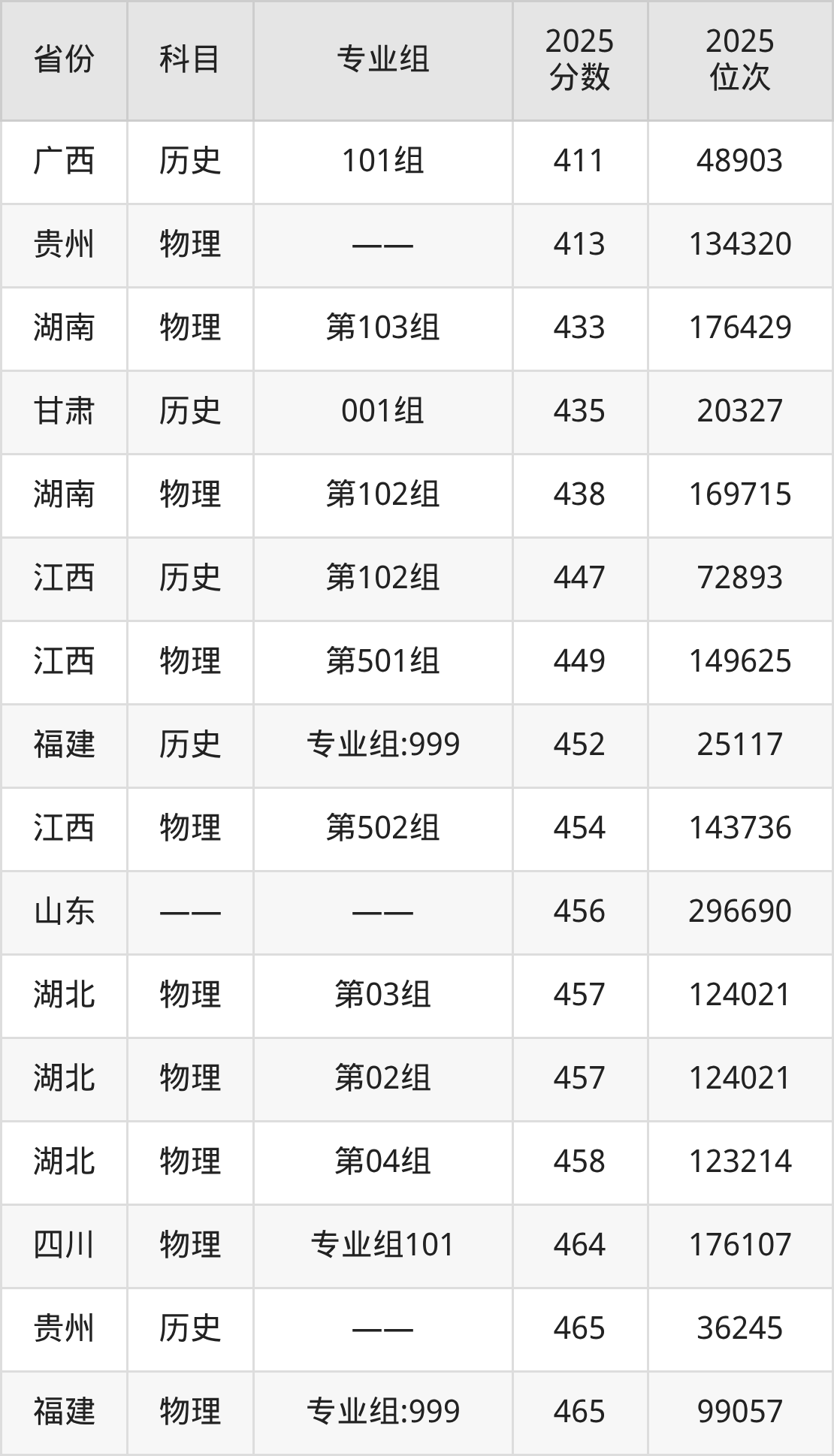 理科:2025年武汉东湖学院录取最低分是297分(新疆),对应的位次排名是41116名。