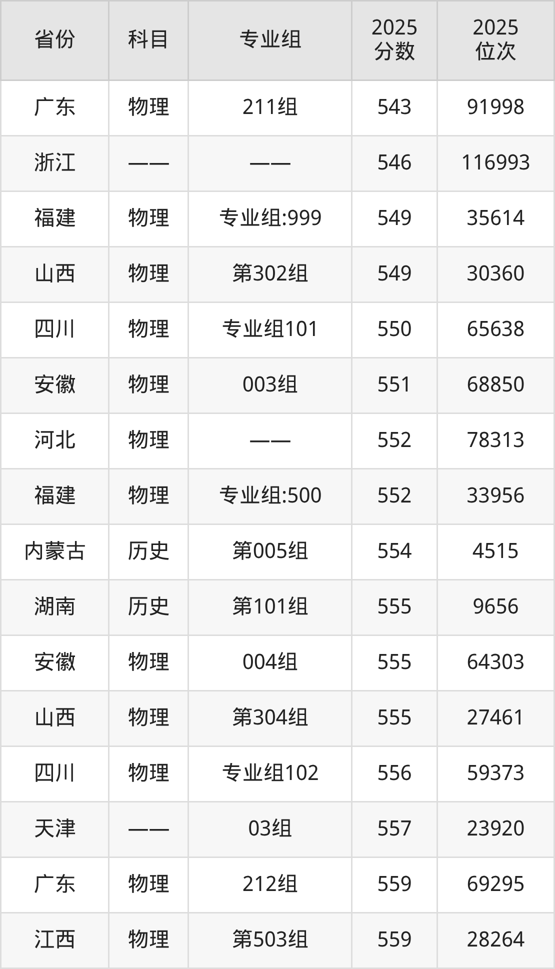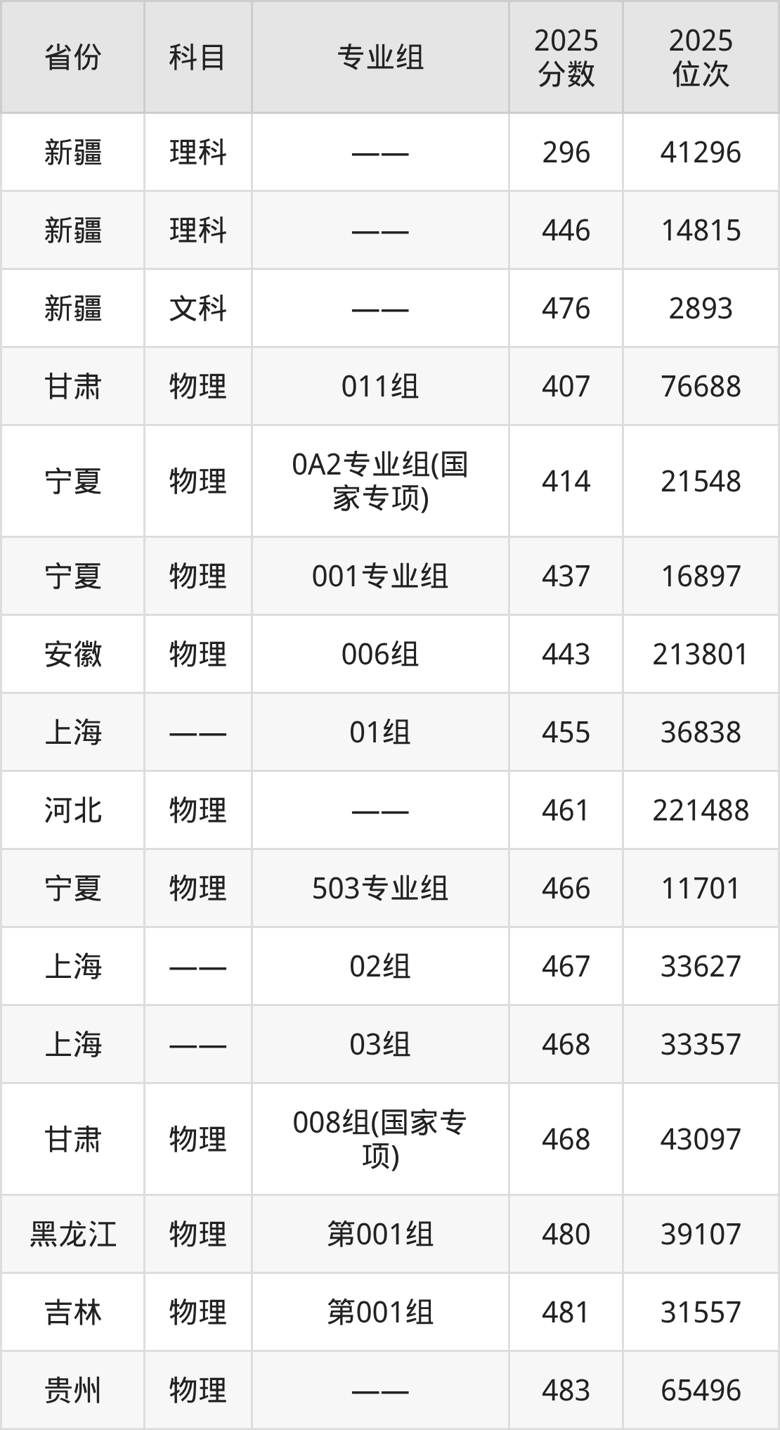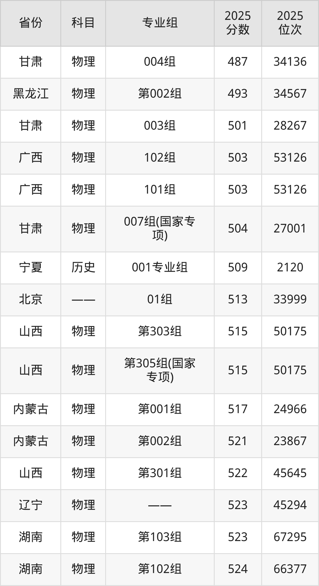历史类:2025年石河子大学录取最低分是509分(宁夏),对应的位次排名是2120名。