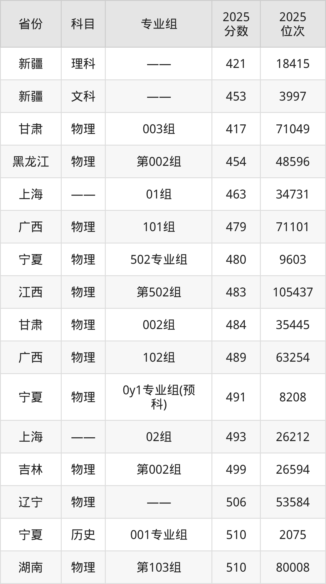历史类:2025年西安科技大学录取最低分是510分(宁夏),对应的位次排名是2075名。