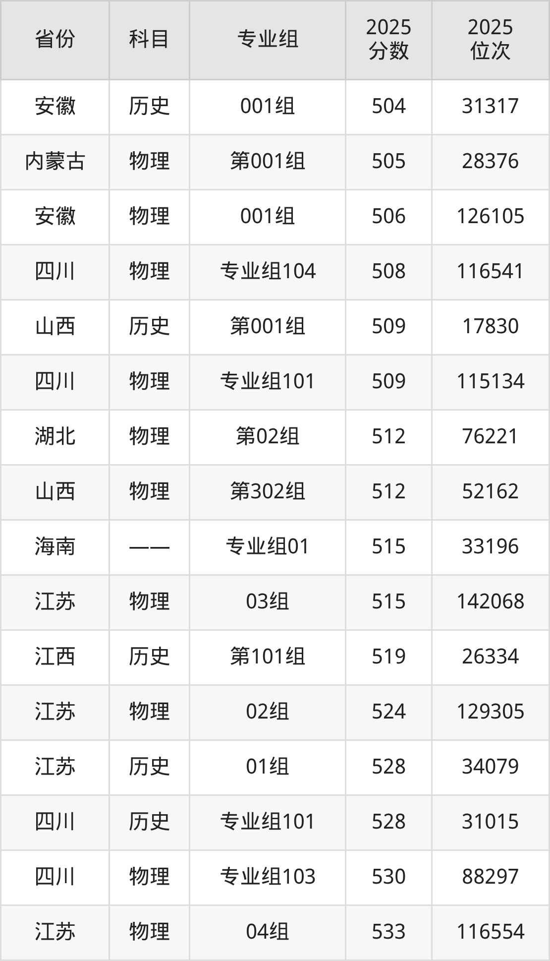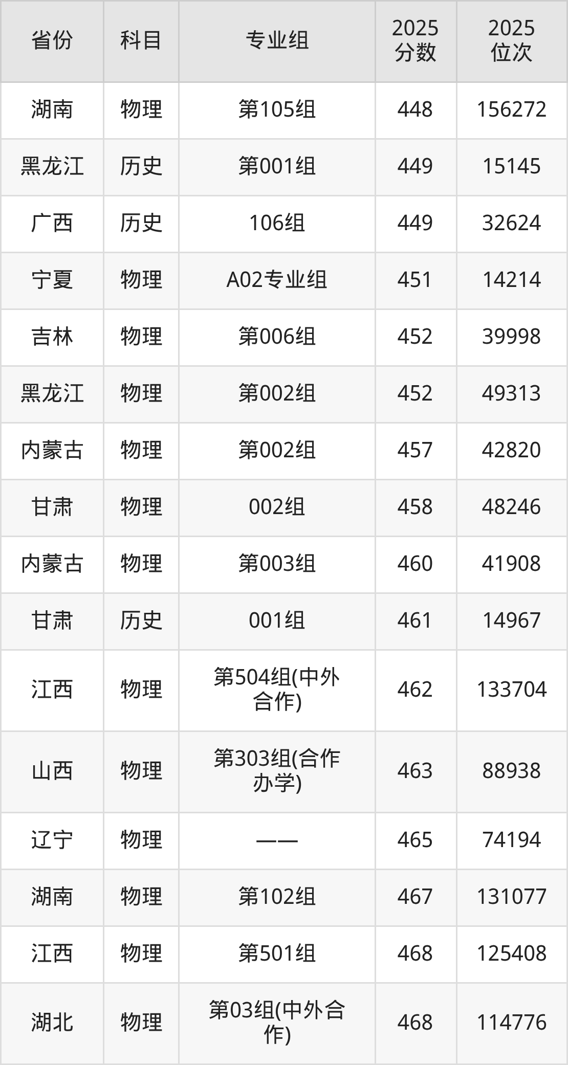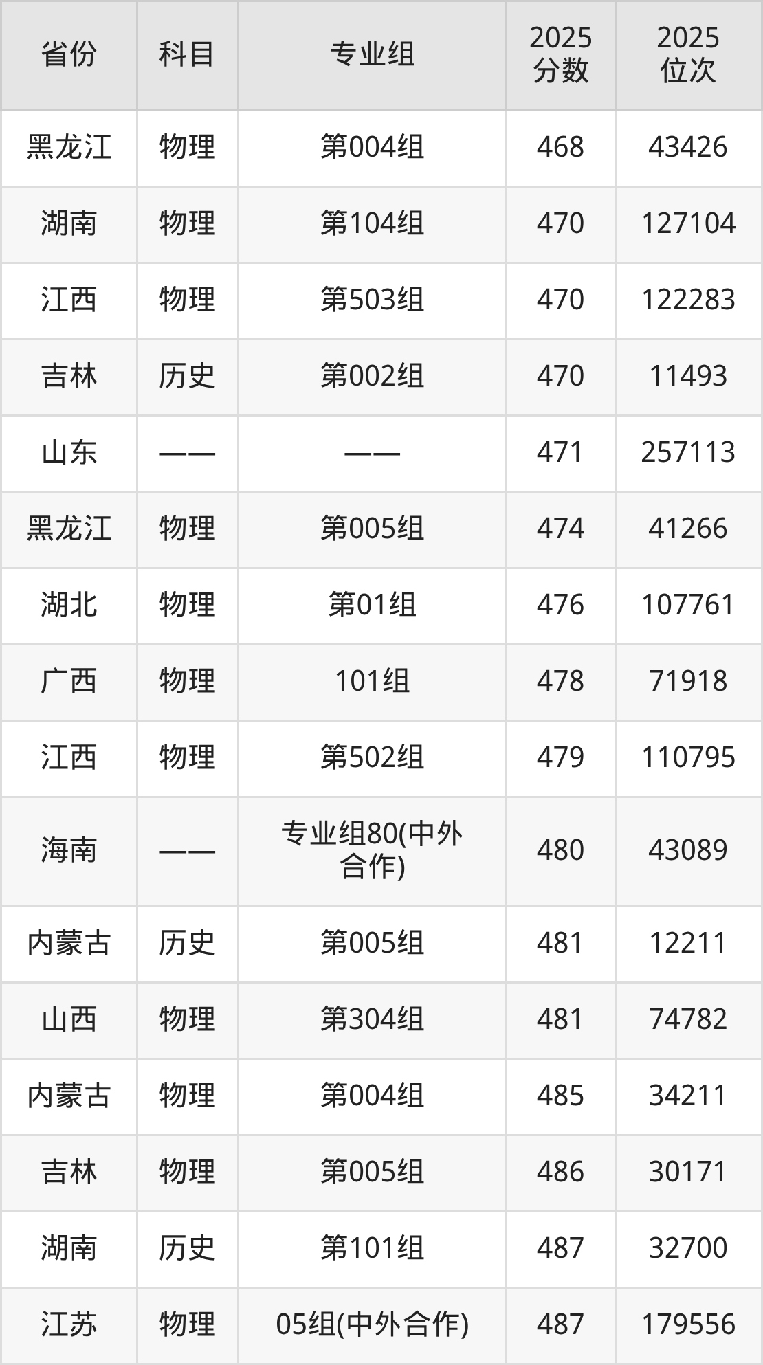 3+3地区:2025年吉林医药学院录取最低分是471分(山东),对应的位次排名是257113名。