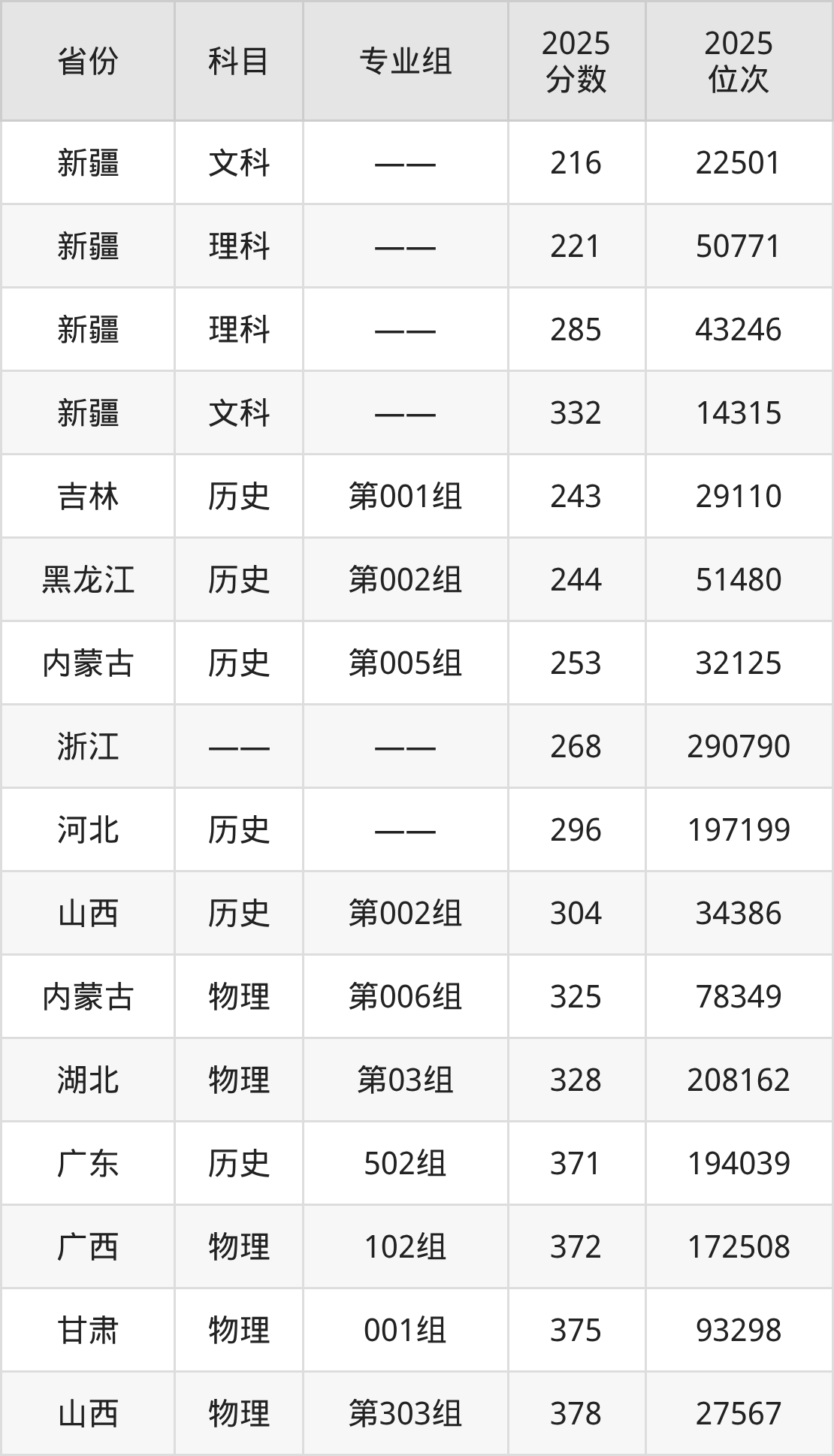 文科:2025年西安明德理工学院录取最低分是216分(新疆),对应的位次排名是22501名。