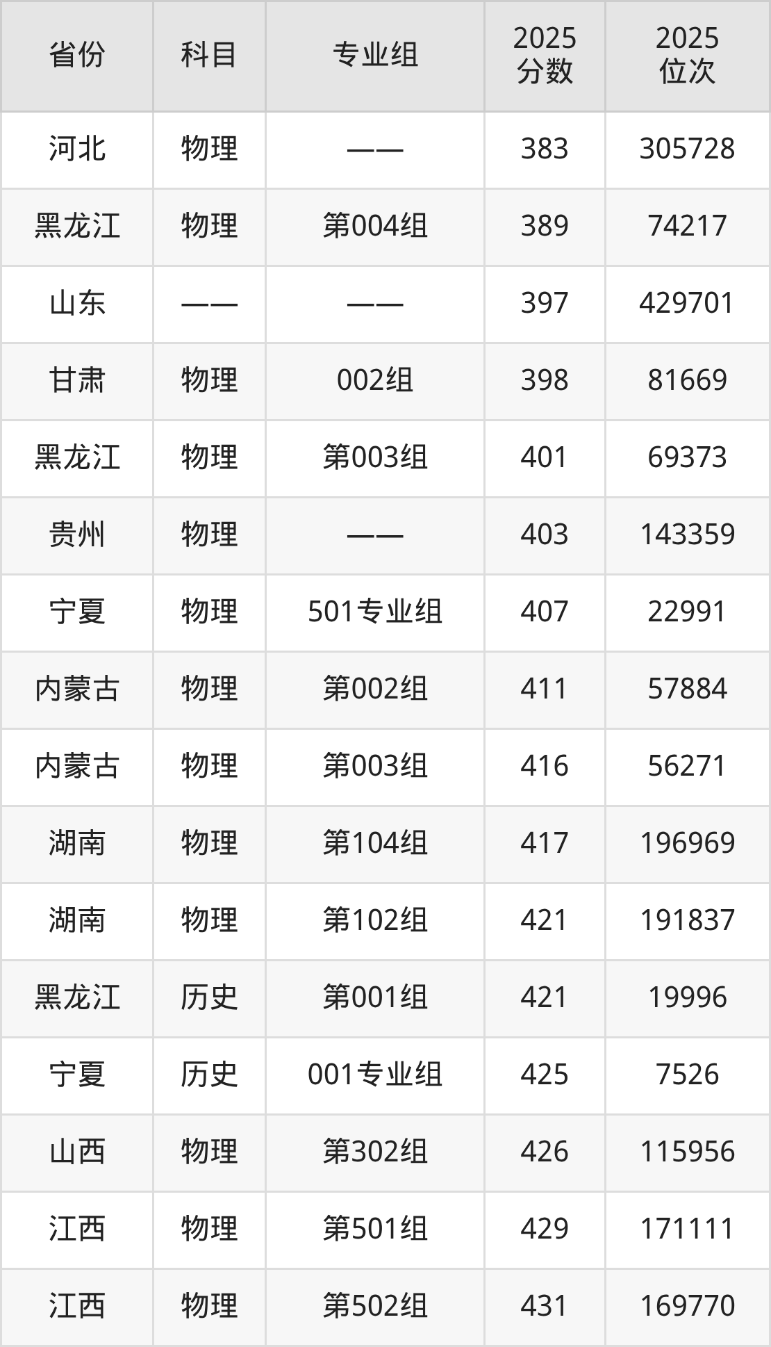 物理类:2025年西安明德理工学院录取最低分是325分(内蒙古),对应的位次排名是78349名。