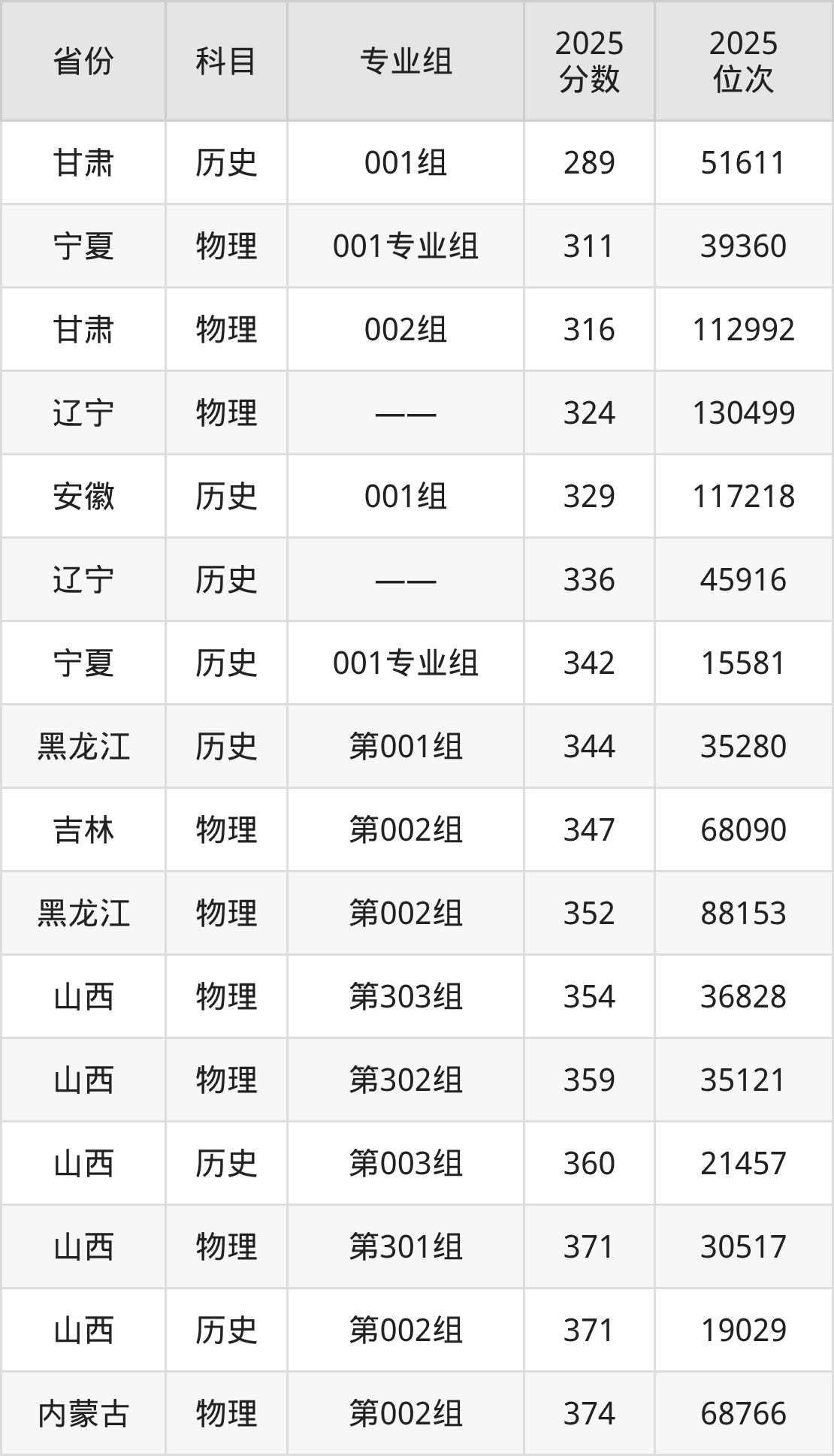 历史类:2025年衡水职业技术学院录取最低分是289分(甘肃),对应的位次排名是51611名。