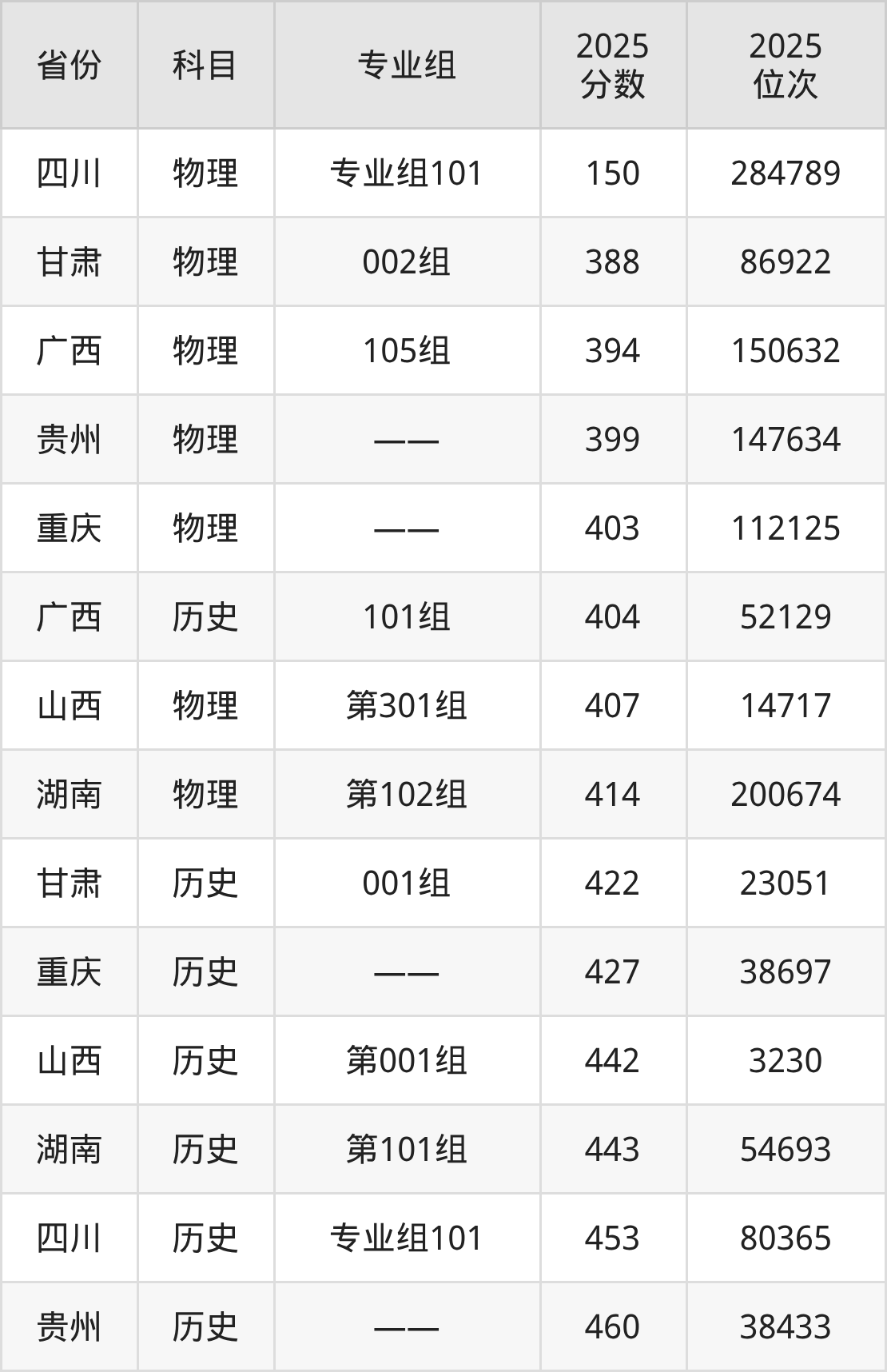 历史类:2025年四川护理职业学院录取最低分是404分(广西),对应的位次排名是52129名。