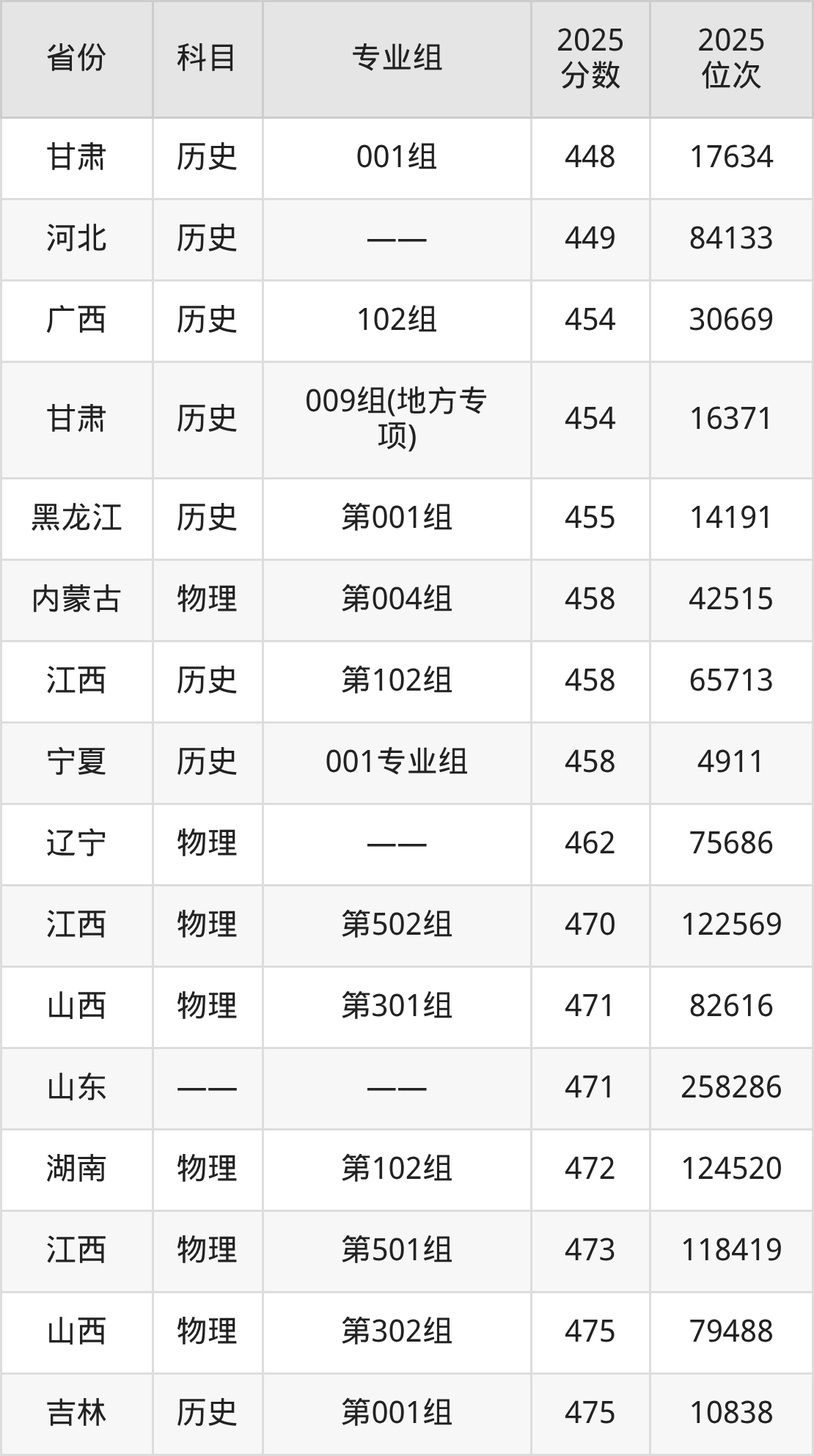 历史类:2025年兰州石化职业技术大学省内录取最低分是358分,对应的位次排名是37675名。建议:如果2026年排名超过37675名,那么被该校录取的概率较大。