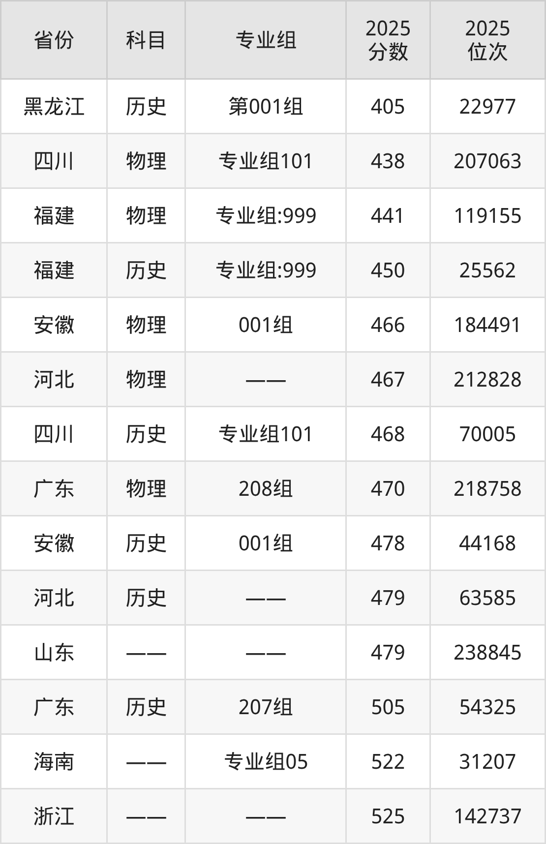 3+3地区:2025年北海艺术设计学院录取最低分是479分(山东),对应的位次排名是238845名。