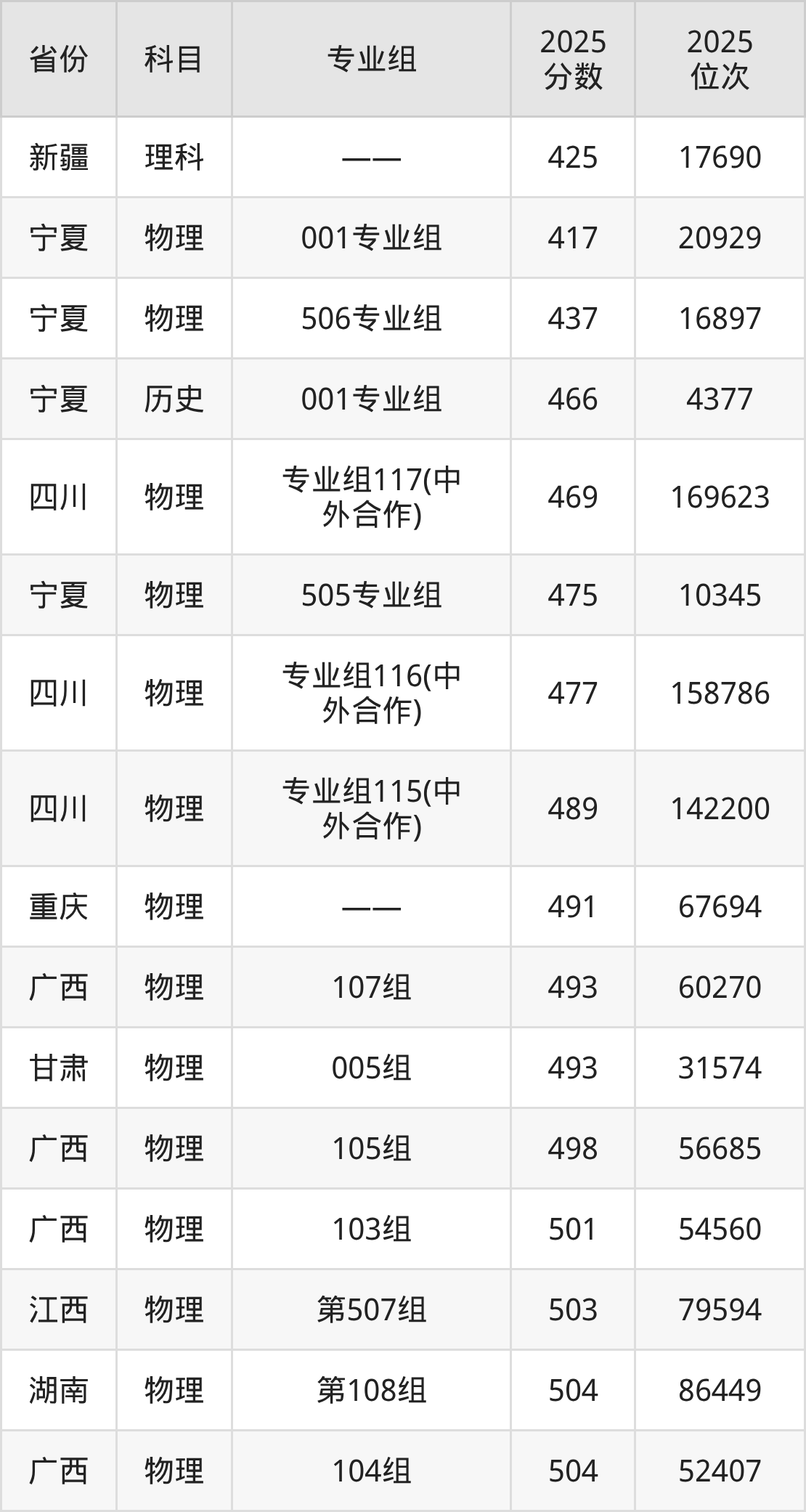 物理类:2025年西南医科大学录取最低分是417分(宁夏),对应的位次排名是20929名。