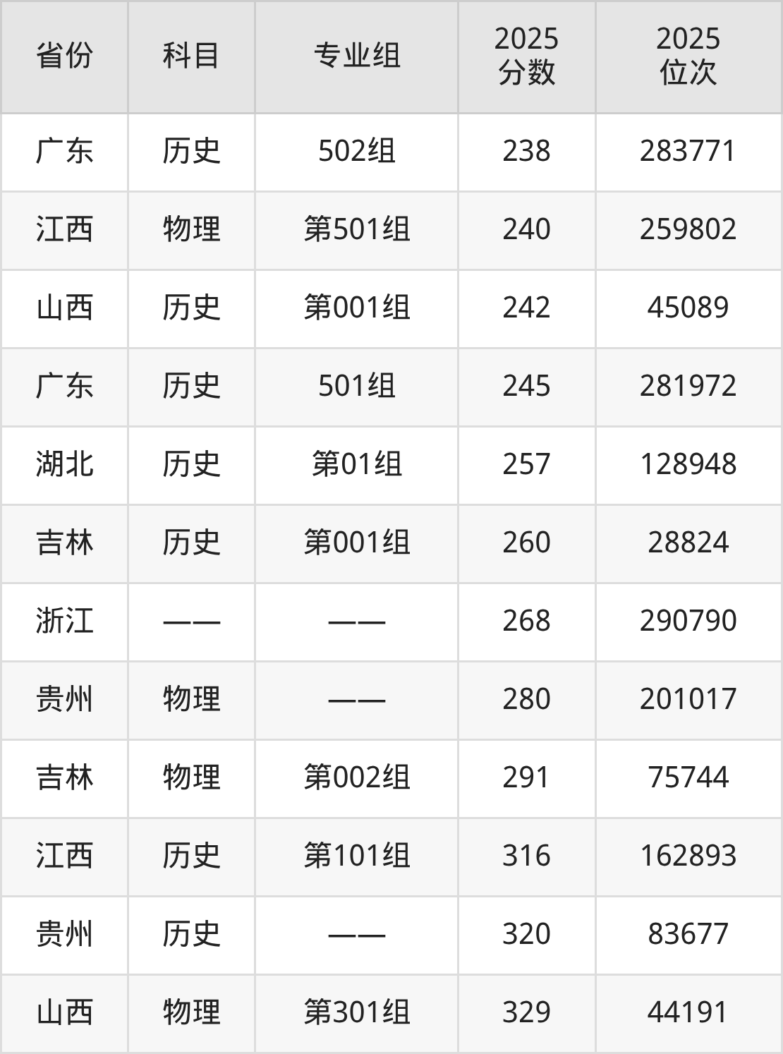 物理类:2025年广东碧桂园职业学院录取最低分是150分(四川),对应的位次排名是284789名。