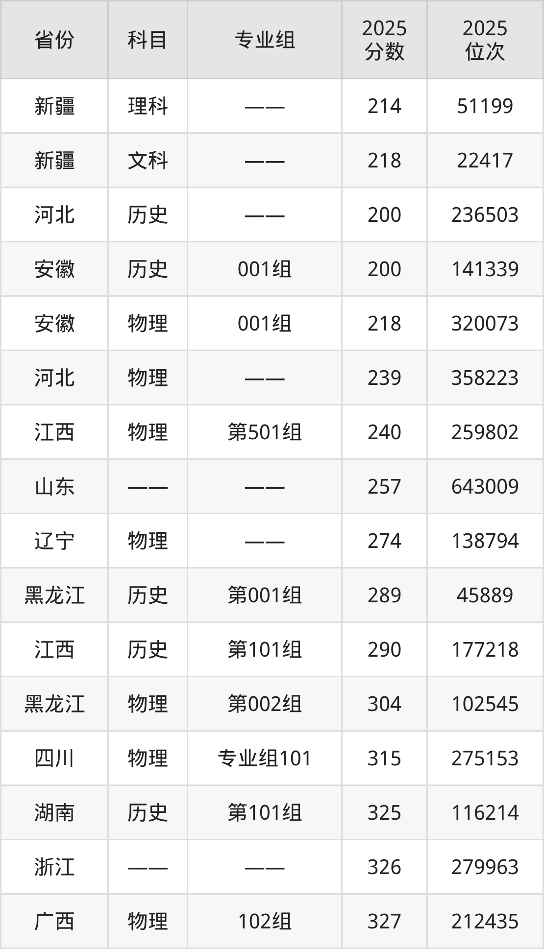 理科:2025年上海东海职业技术学院录取最低分是214分(新疆),对应的位次排名是51199名。