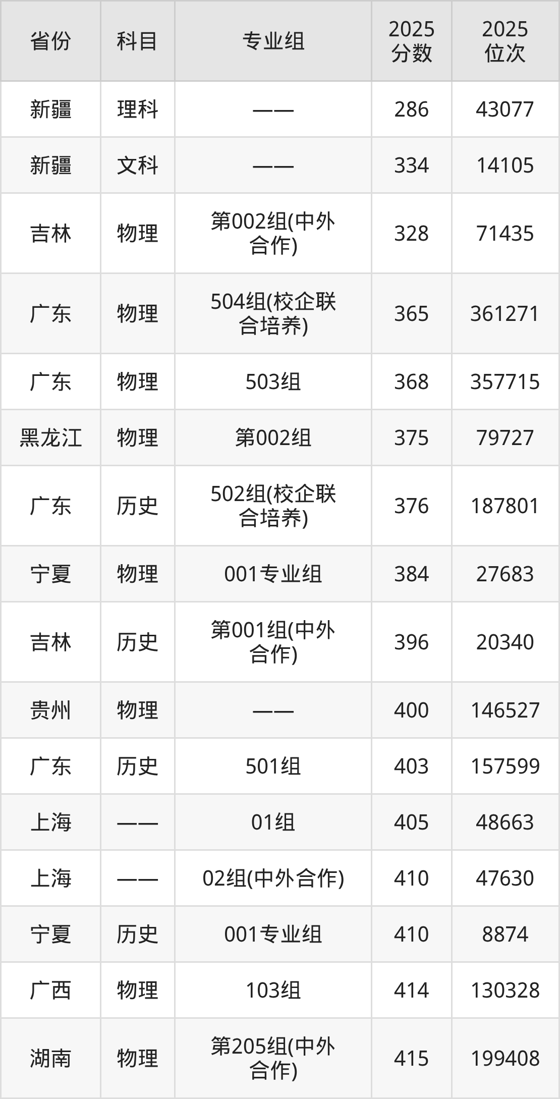 理科:2025年广州商学院录取最低分是286分(新疆),对应的位次排名是43077名。