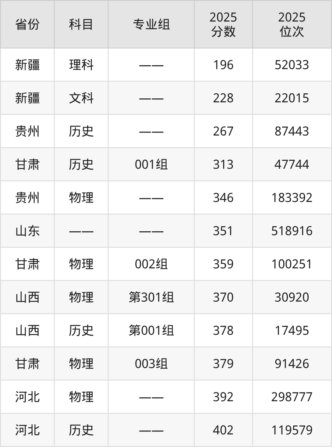 理科:2025年山东电子职业技术学院录取最低分是196分(新疆),对应的位次排名是52033名。