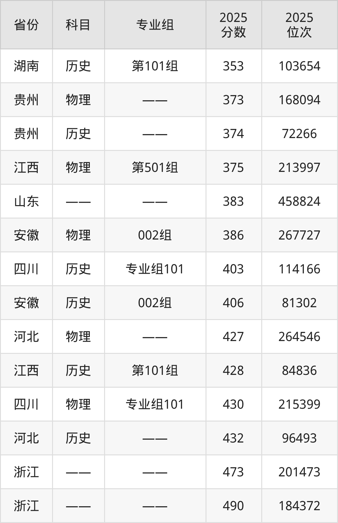 物理类:2025年皖西卫生职业学院录取最低分是373分(贵州),对应的位次排名是168094名。
