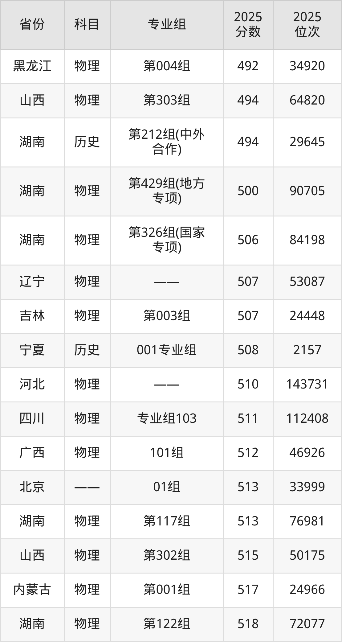 历史类:2025年湖南工商大学录取最低分是508分(宁夏),对应的位次排名是2157名。