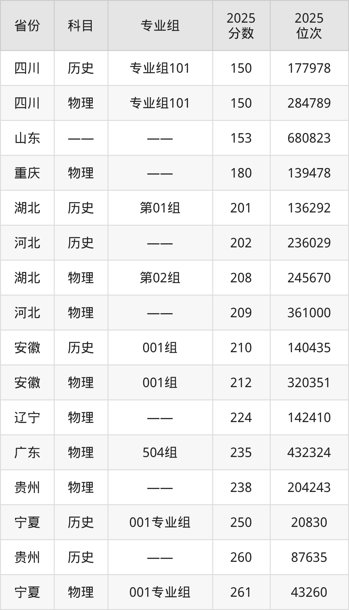 物理类:2025年民办四川天一学院录取最低分是180分(重庆),对应的位次排名是139478名。