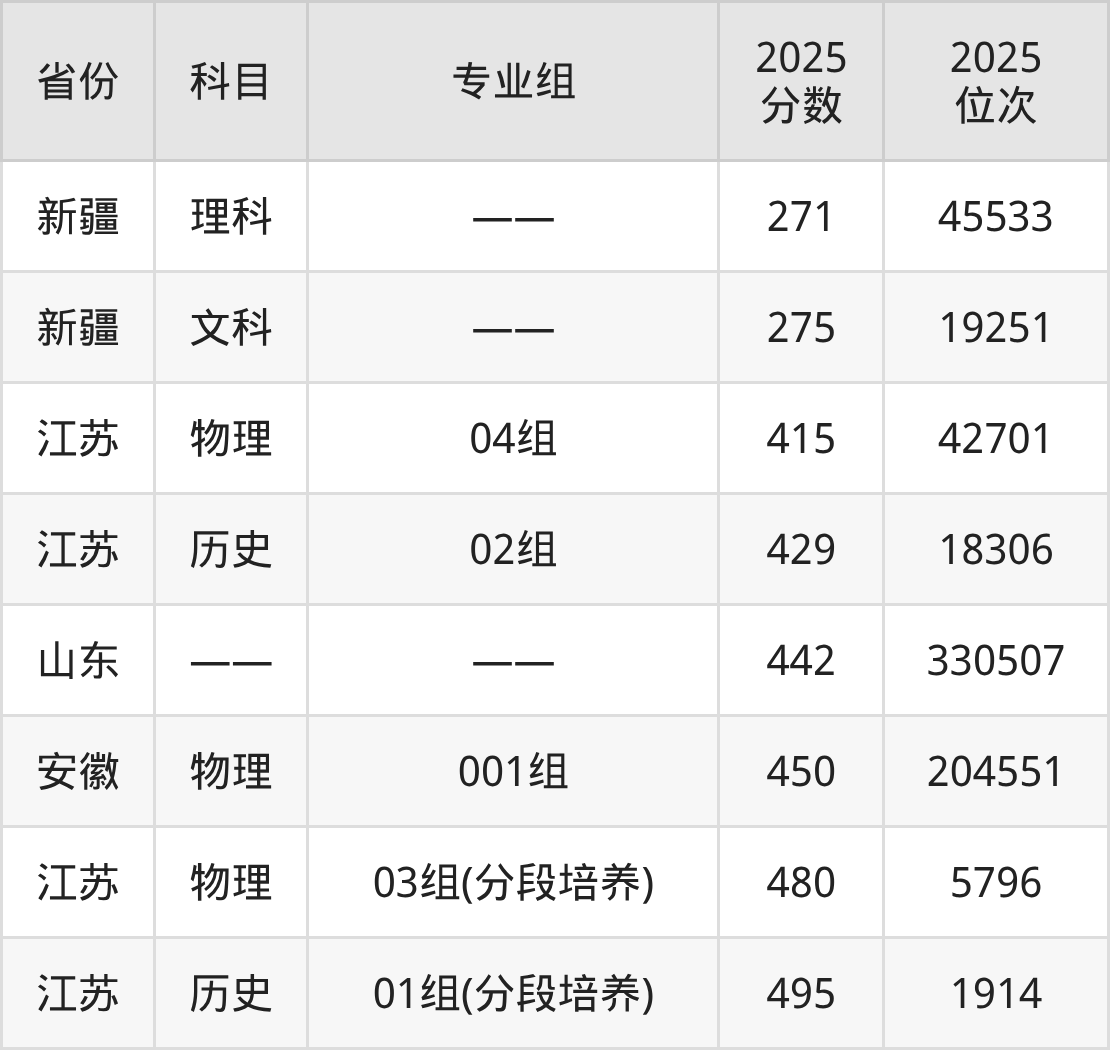 理科:2025年无锡科技职业学院录取最低分是271分(新疆),对应的位次排名是45533名。