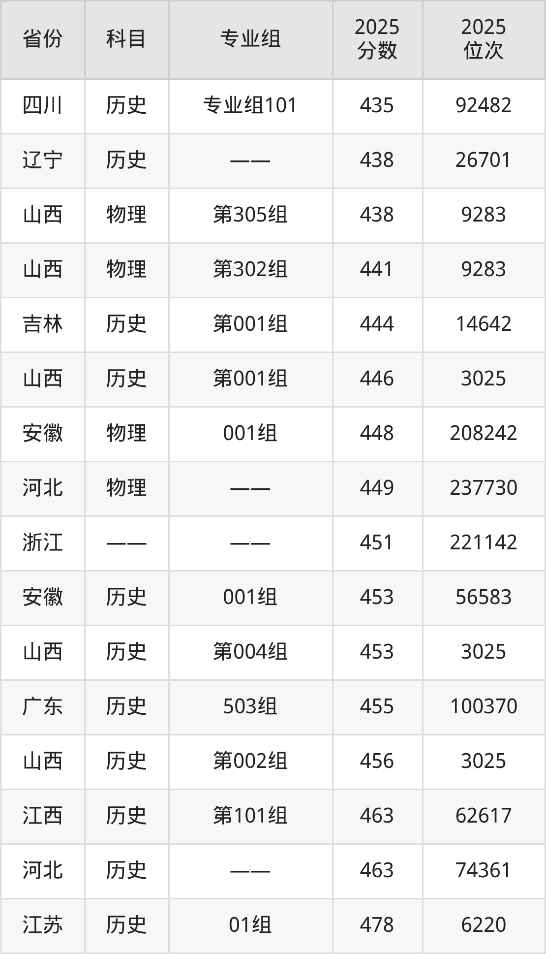 物理类:2025年天津铁道职业技术学院录取最低分是357分(内蒙古),对应的位次排名是72756名。
