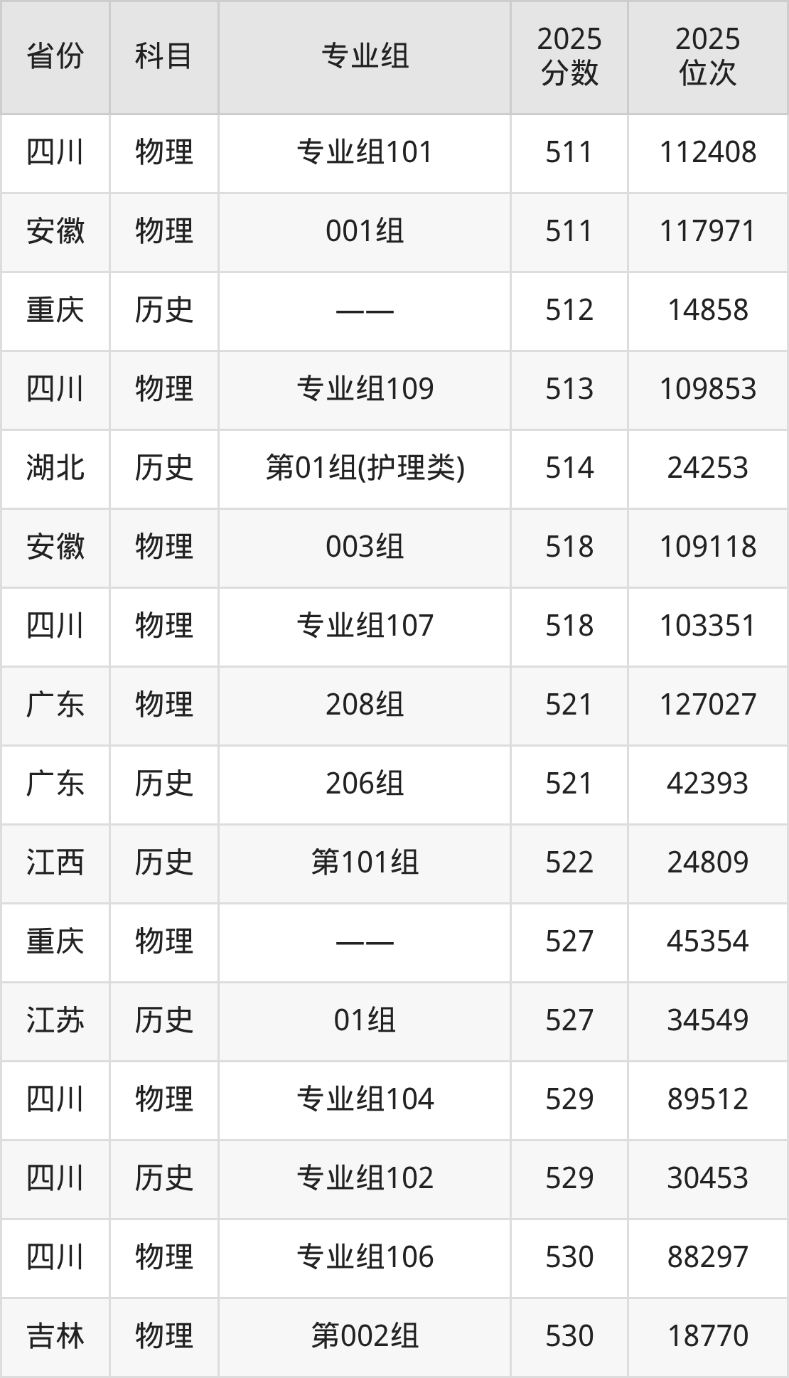 物理类:2025年川北医学院省内录取最低分是511分,对应的位次排名是112408名。建议:如果2026年排名超过112408名,那么被该校录取的概率较大。