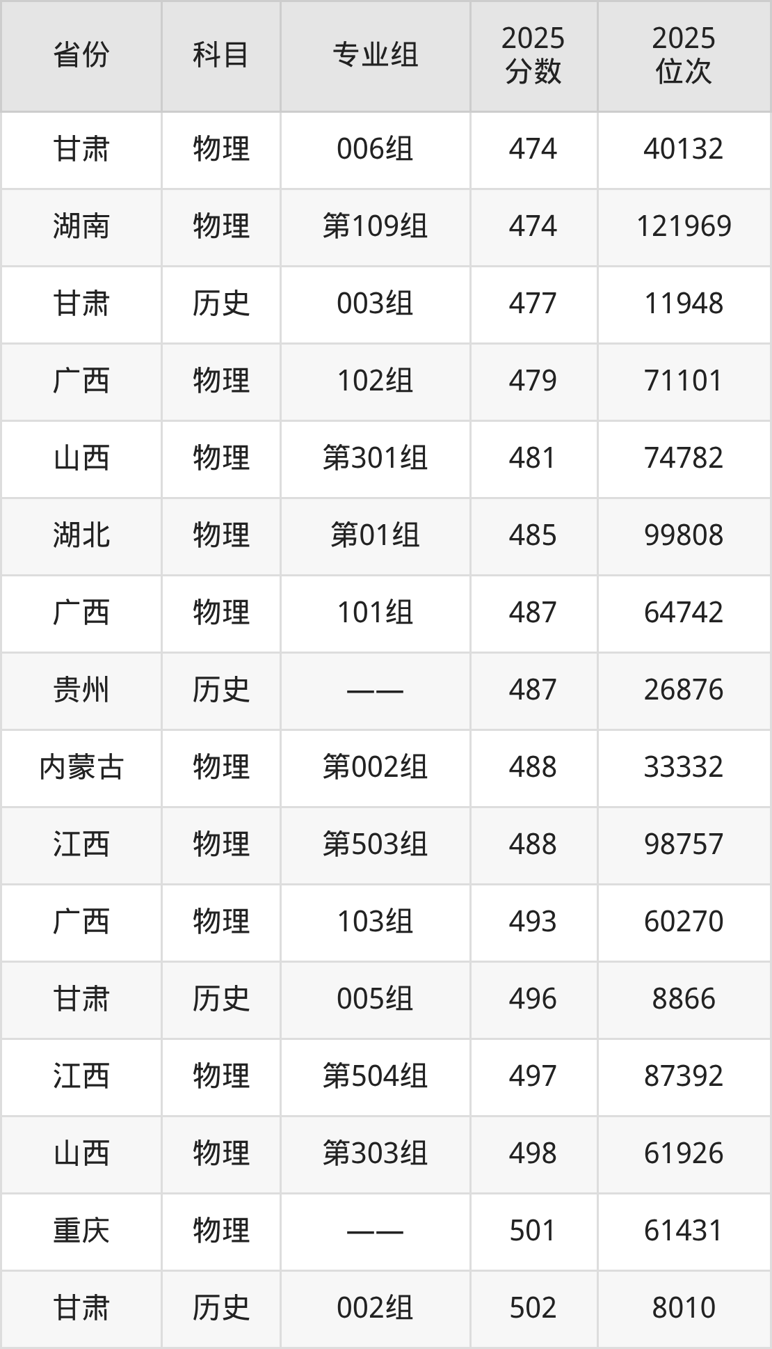 历史类:2025年遵义师范学院录取最低分是477分(甘肃),对应的位次排名是11948名。