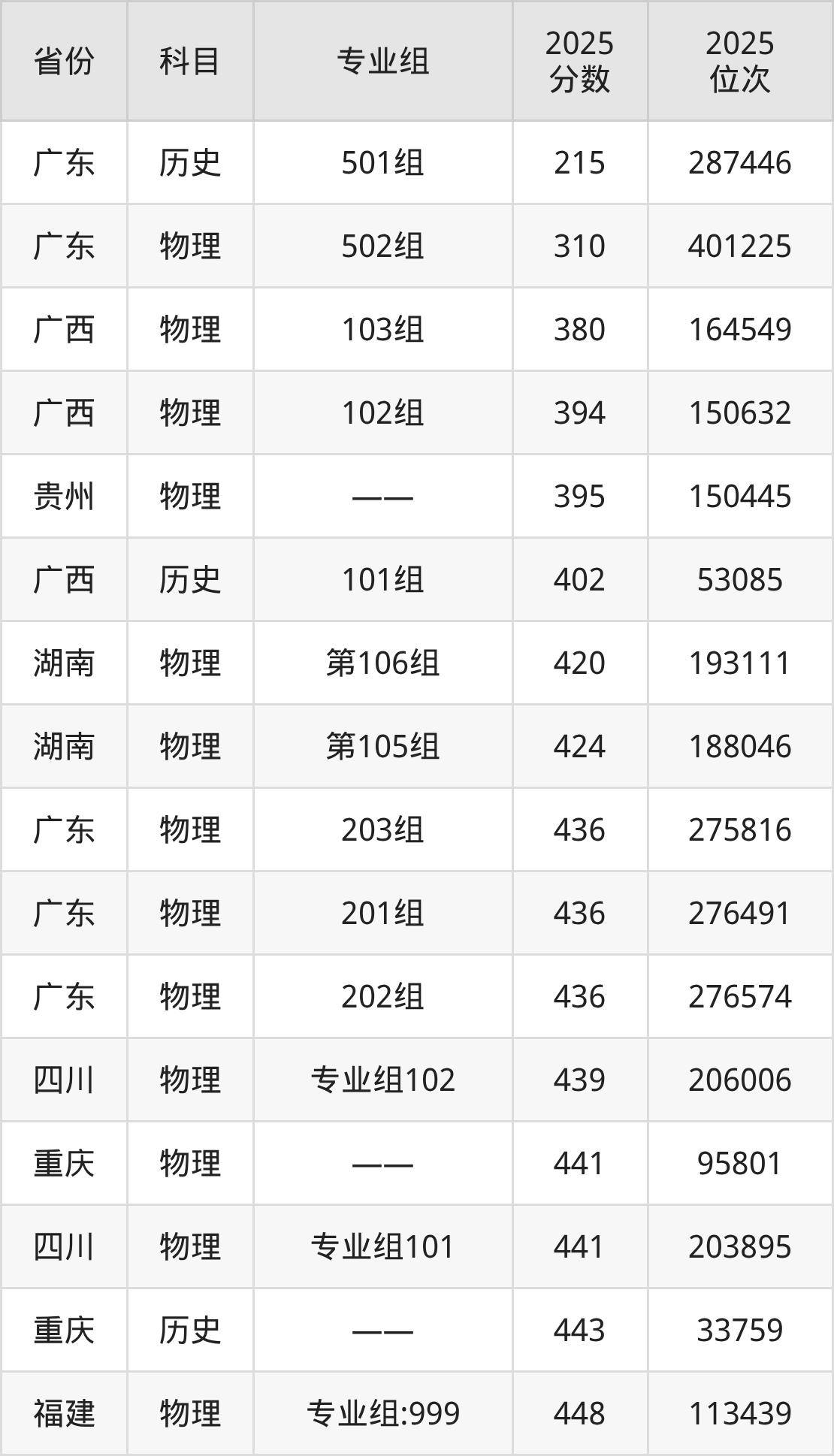 物理类:2025年湛江科技学院录取最低分是380分(广西),对应的位次排名是164549名。