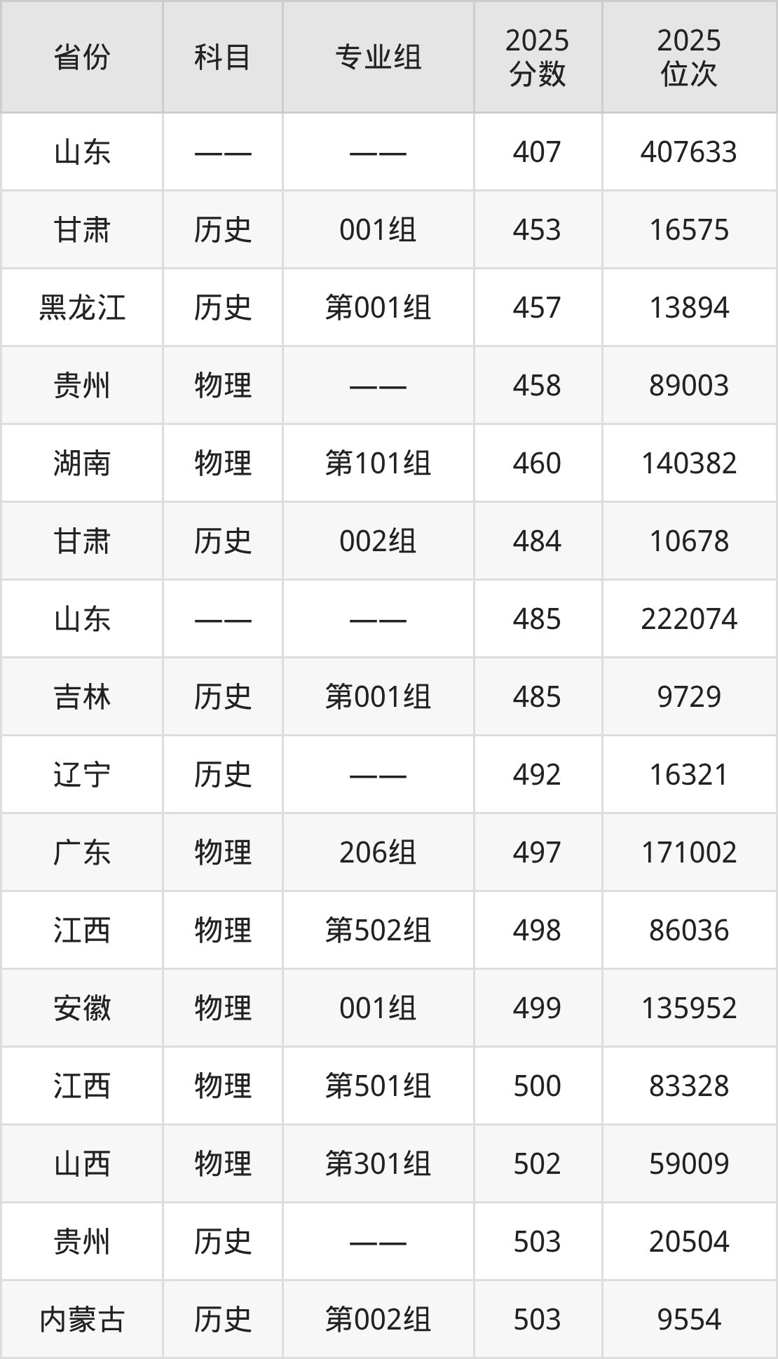 物理类:2025年山东青年政治学院录取最低分是458分(贵州),对应的位次排名是89003名。