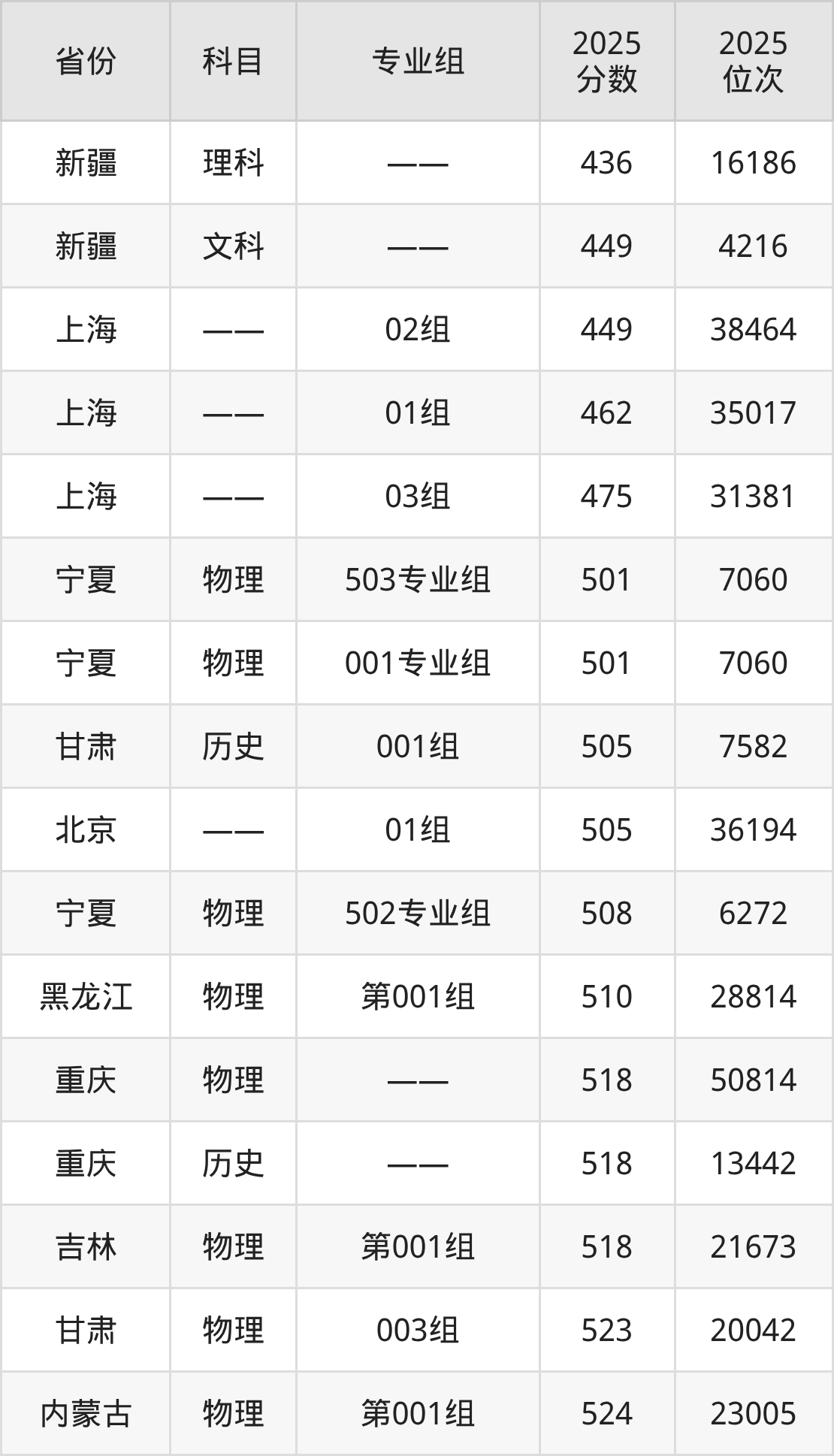 理科:2025年重庆理工大学录取最低分是436分(新疆),对应的位次排名是16186名。