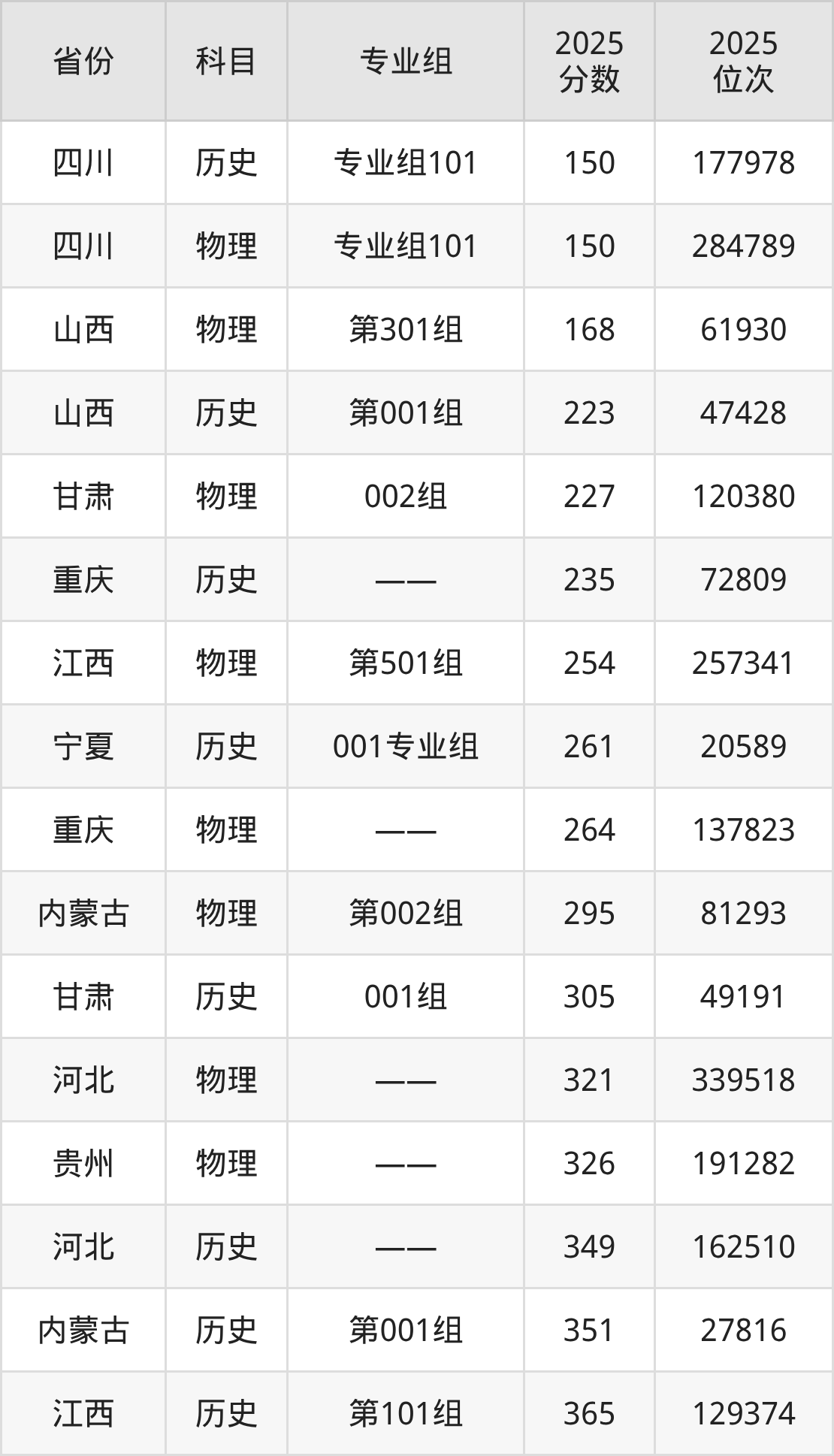 物理类:2025年石家庄工商职业学院录取最低分是150分(四川),对应的位次排名是284789名。