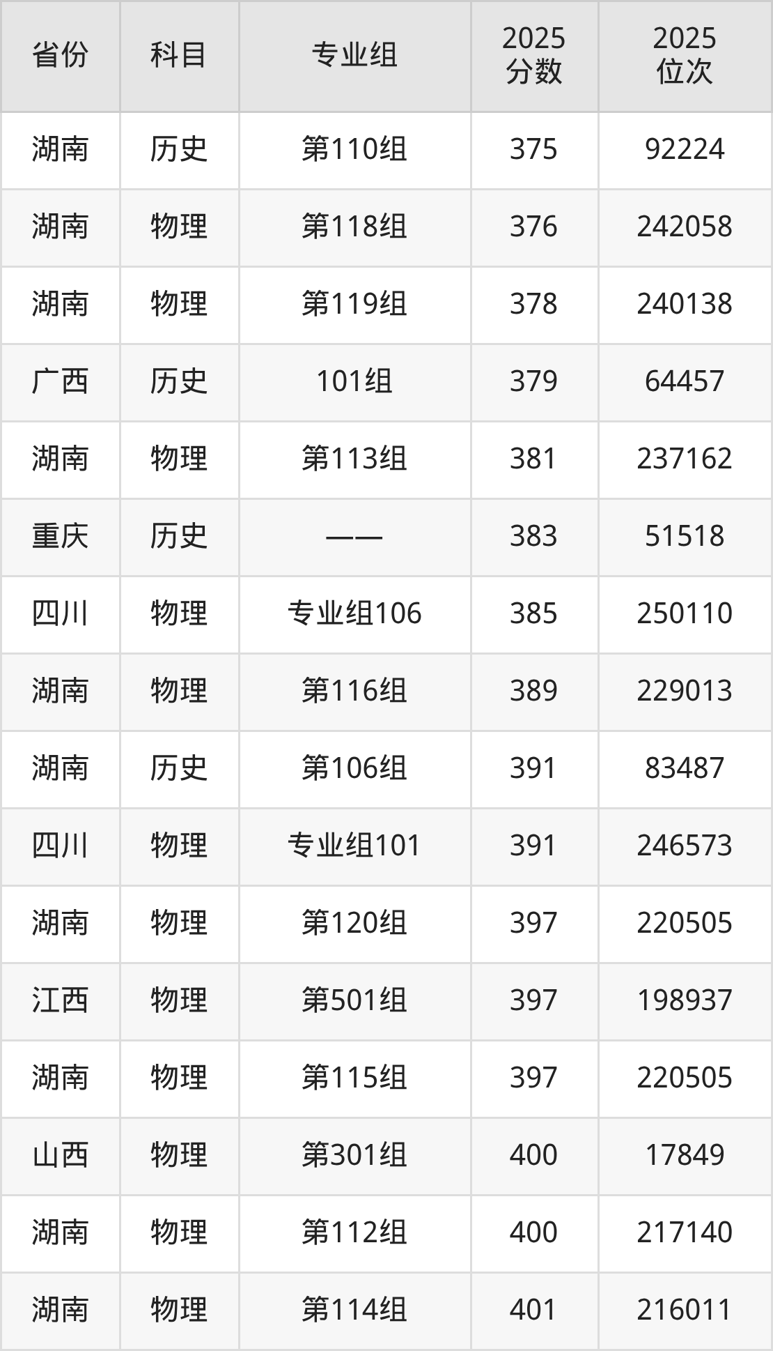 物理类:2025年岳阳职业技术学院录取最低分是150分(四川),对应的位次排名是284789名。