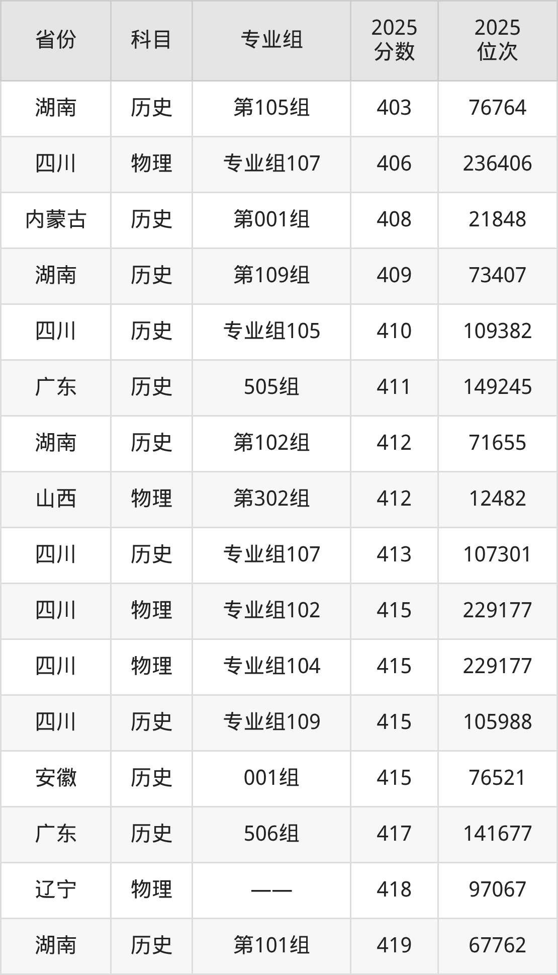 历史类:2025年岳阳职业技术学院录取最低分是150分(四川),对应的位次排名是177978名。