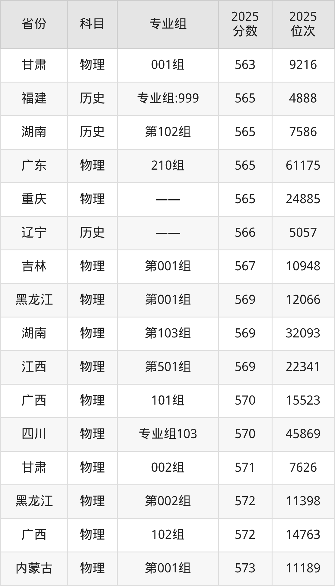 物理类:2025年杭州电子科技大学录取最低分是504分(宁夏),对应的位次排名是6715名。
