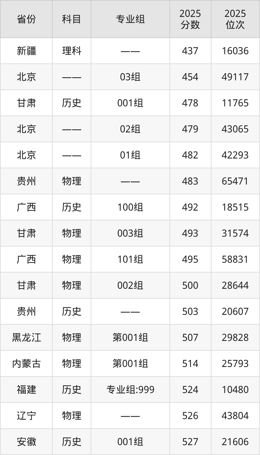 物理类:2025年北京石油化工学院录取最低分是483分(贵州),对应的位次排名是65471名。