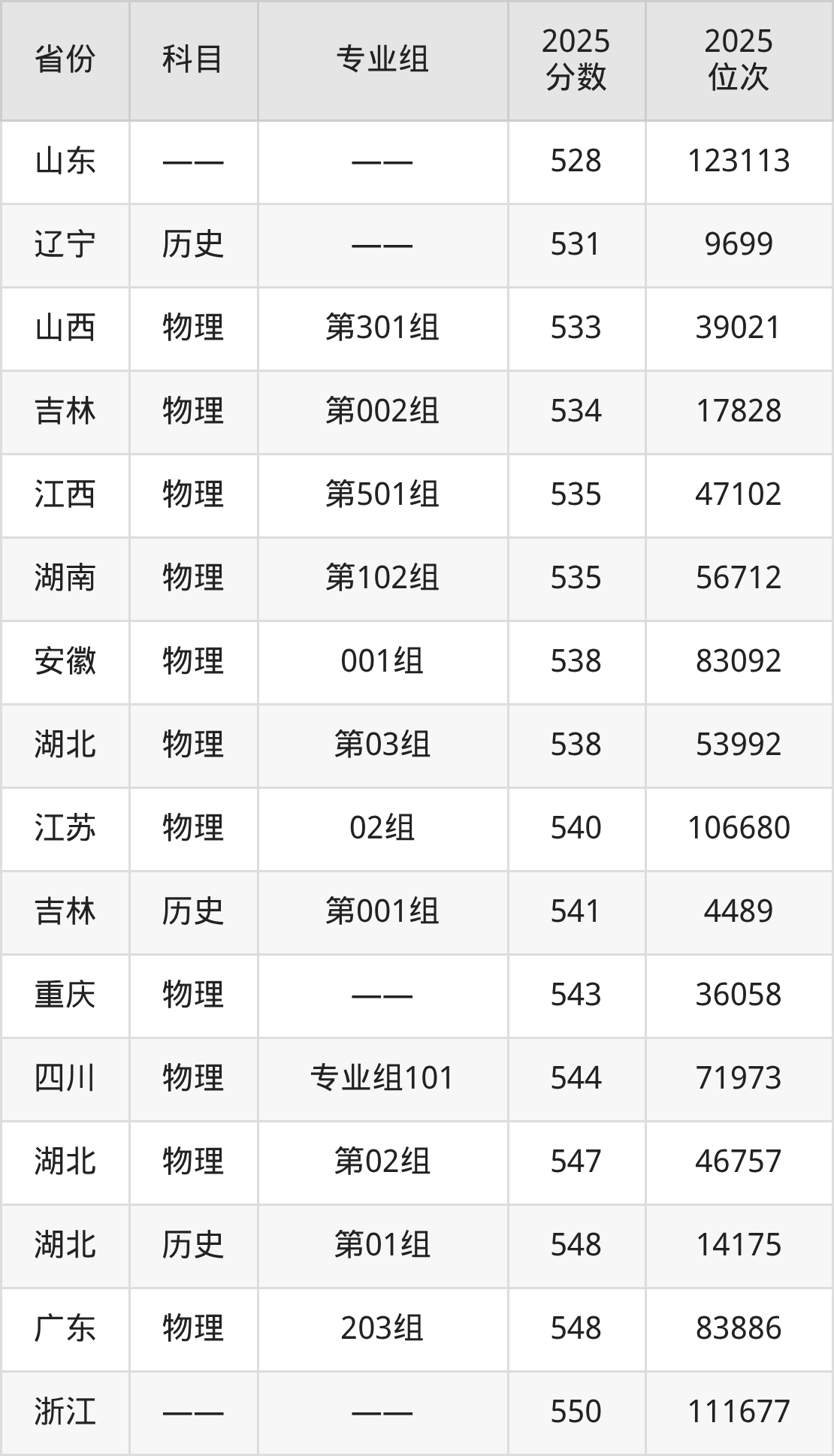 3+3地区:2025年北京石油化工学院录取最低分是528分(山东),对应的位次排名是123113名。