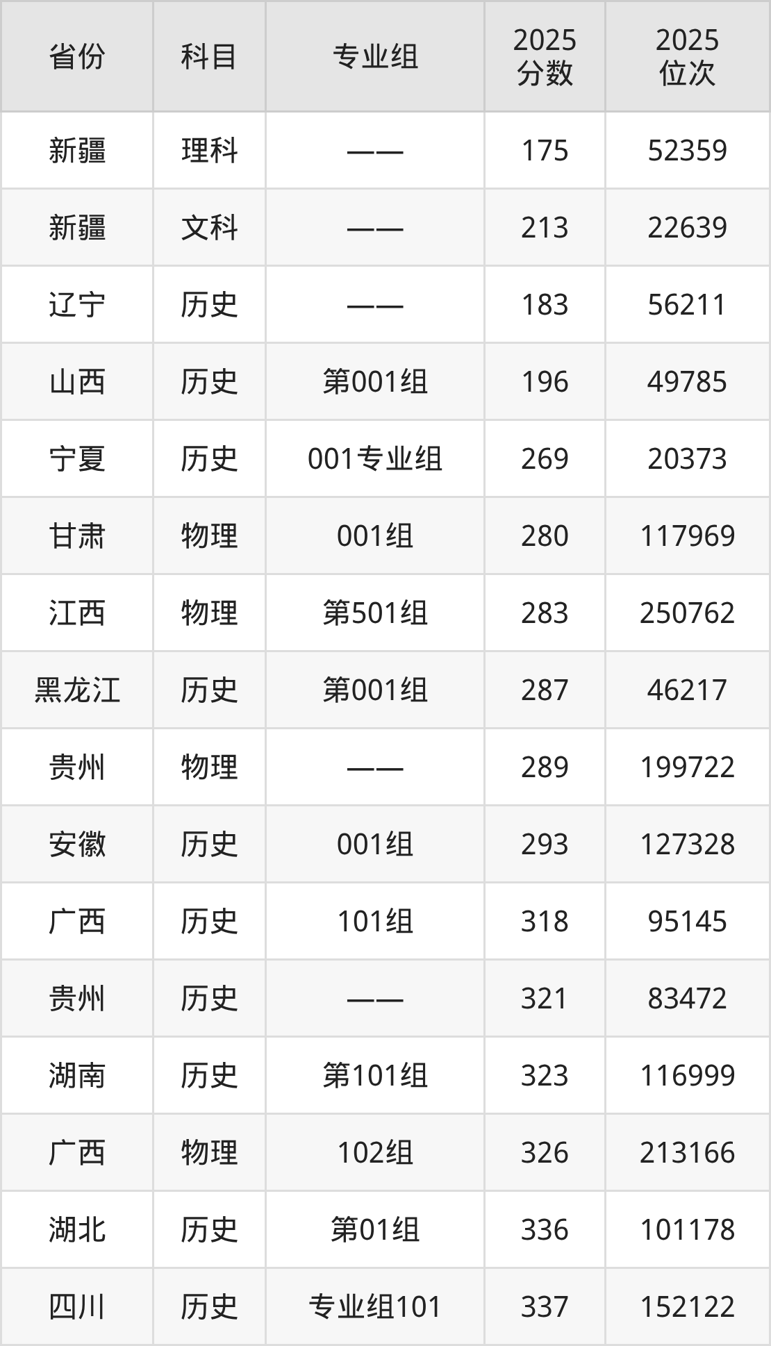 理科:2025年湛江幼儿师范专科学校录取最低分是175分(新疆),对应的位次排名是52359名。