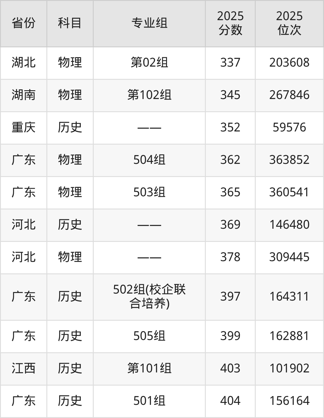物理类:2025年湛江幼儿师范专科学校录取最低分是280分(甘肃),对应的位次排名是117969名。