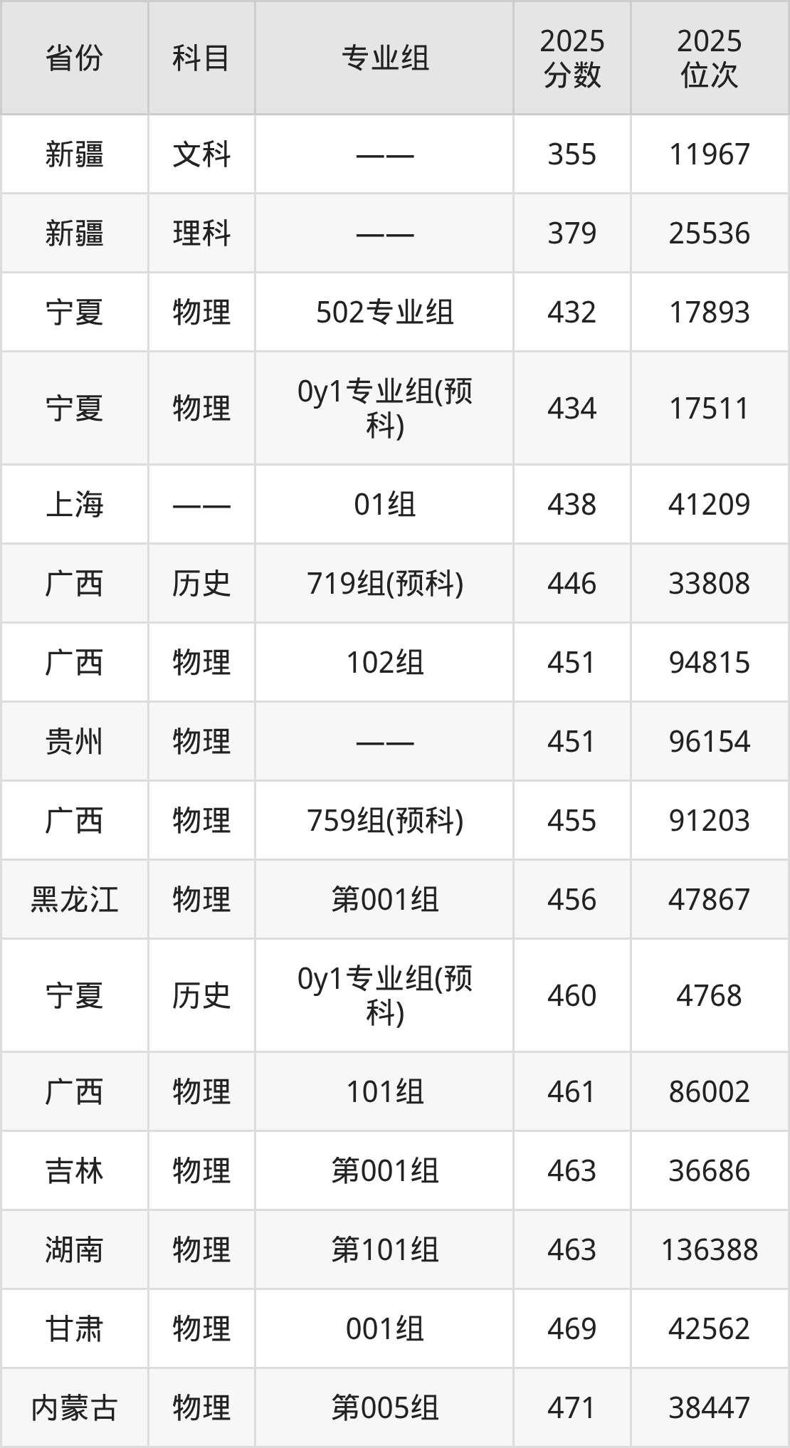 理科:2025年盐城工学院录取最低分是379分(新疆),对应的位次排名是25536名。