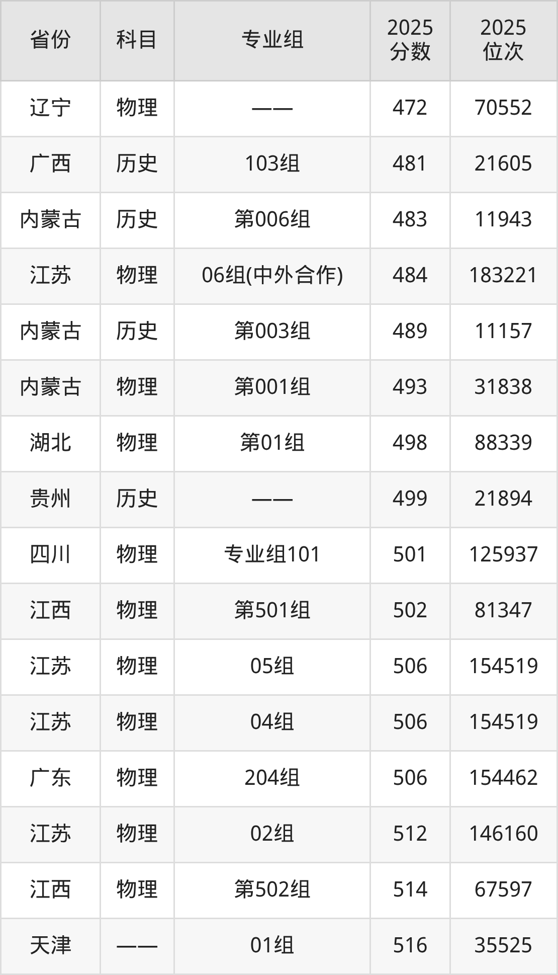 物理类:2025年盐城工学院录取最低分是432分(宁夏),对应的位次排名是17893名。
