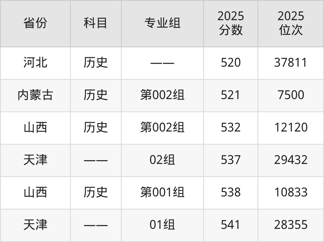 历史类:2025年唐山学院省内录取最低分是520分,对应的位次排名是37811名。建议:如果2026年排名超过37811名,那么被该校录取的概率较大。