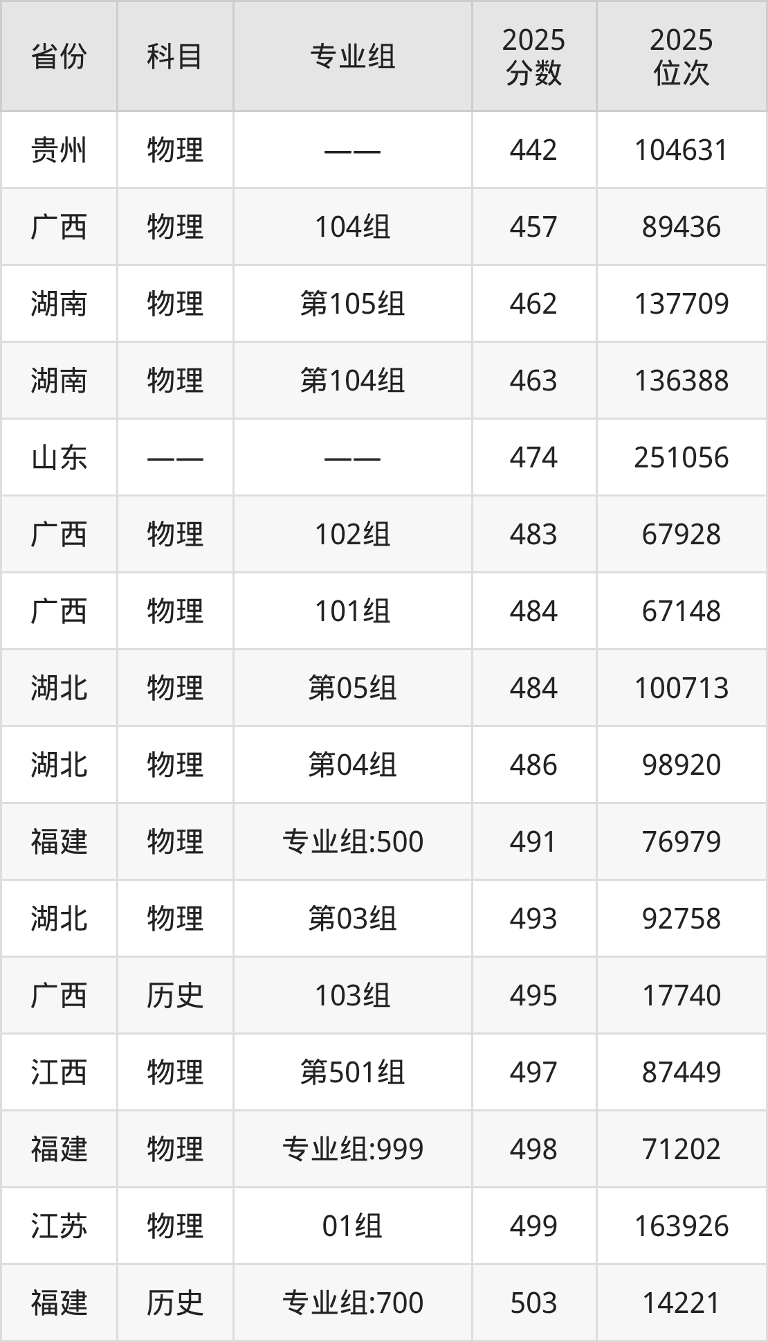 物理类:2025年贵阳学院录取最低分是457分(广西),对应的位次排名是89436名。