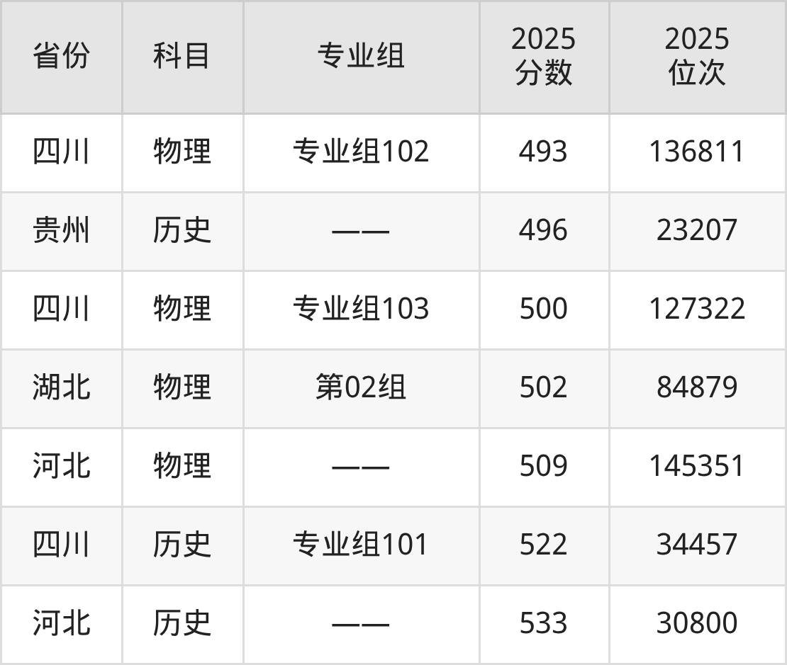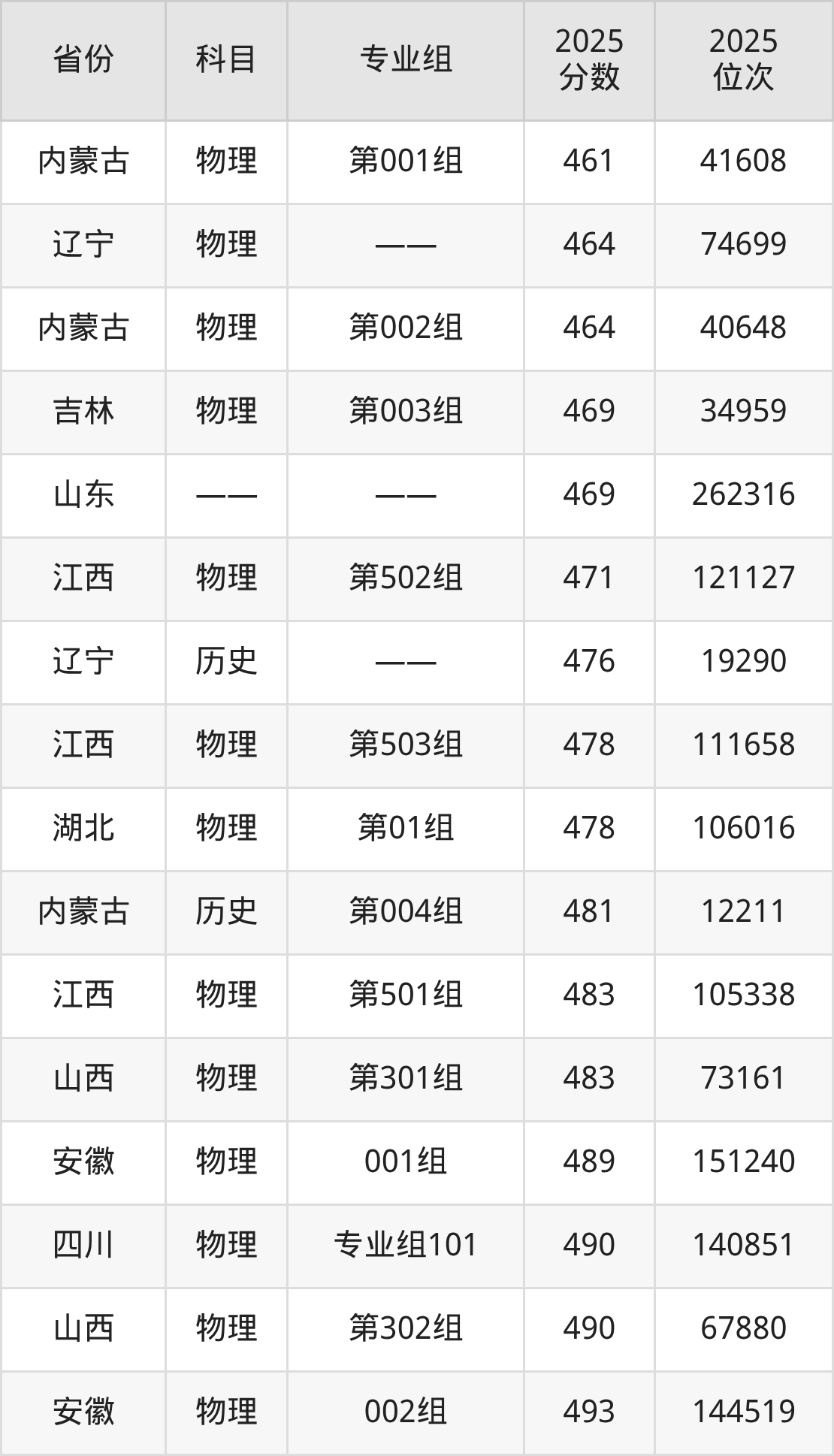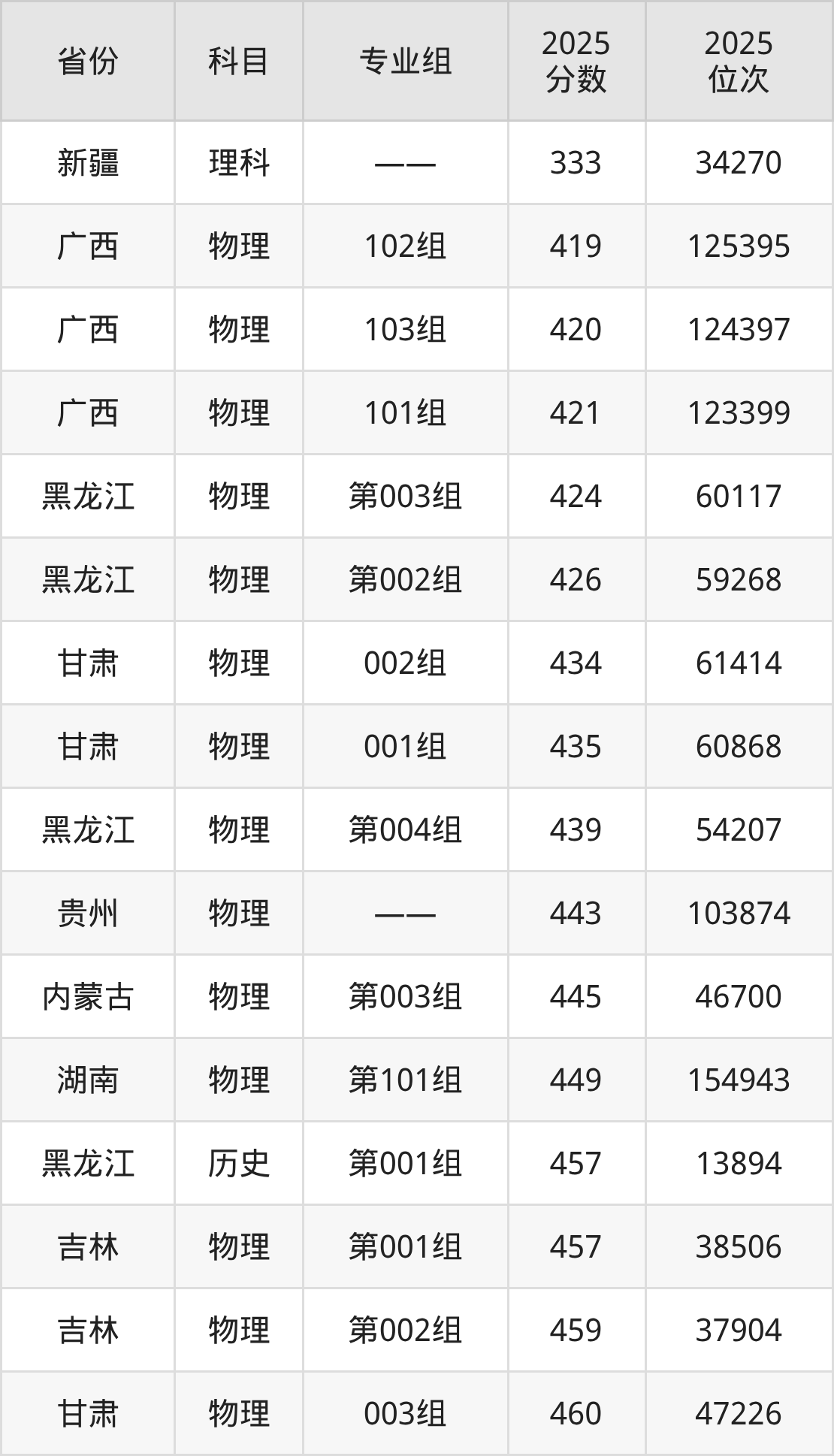 物理类:2025年营口理工学院录取最低分是419分(广西),对应的位次排名是125395名。