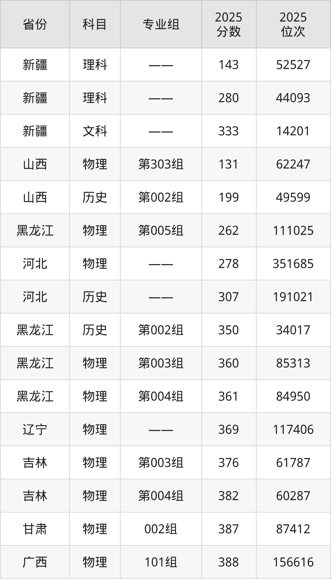 理科:2025年保定理工学院录取最低分是143分(新疆),对应的位次排名是52527名。