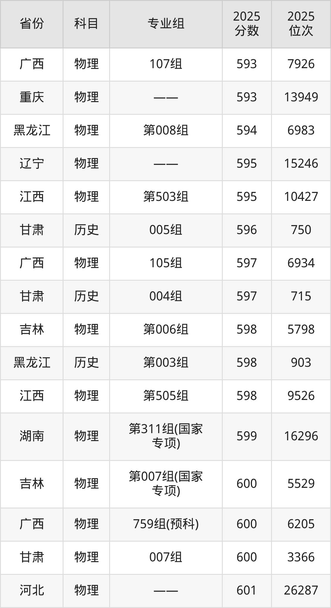 理科:2025年山东大学录取最低分是555分(新疆),对应的位次排名是3682名。