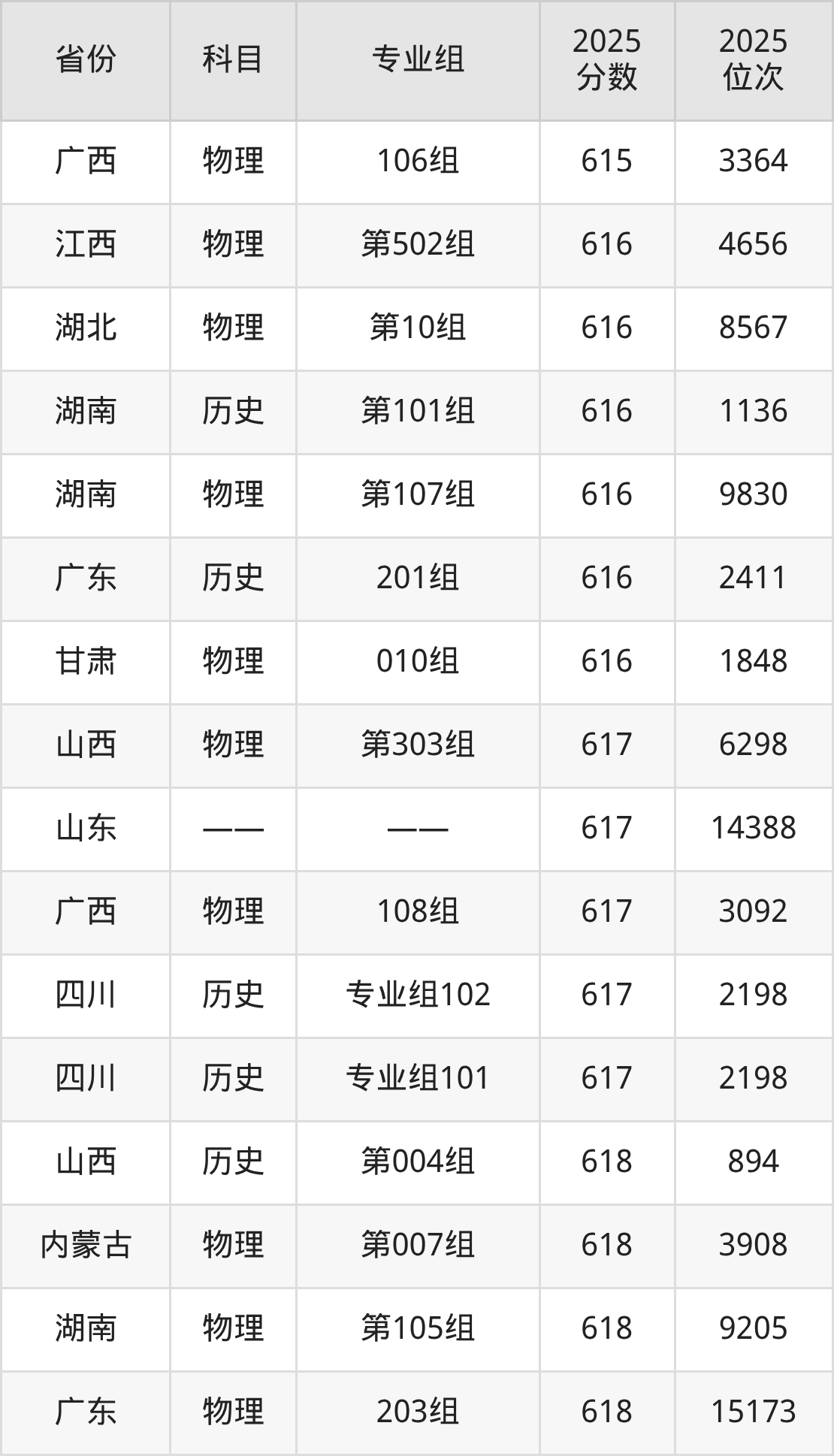2025年山东大学省内录取最低分是617分,对应的位次排名是14388名。建议:如果2026年排名超过14388名,那么被该校录取的概率较大。