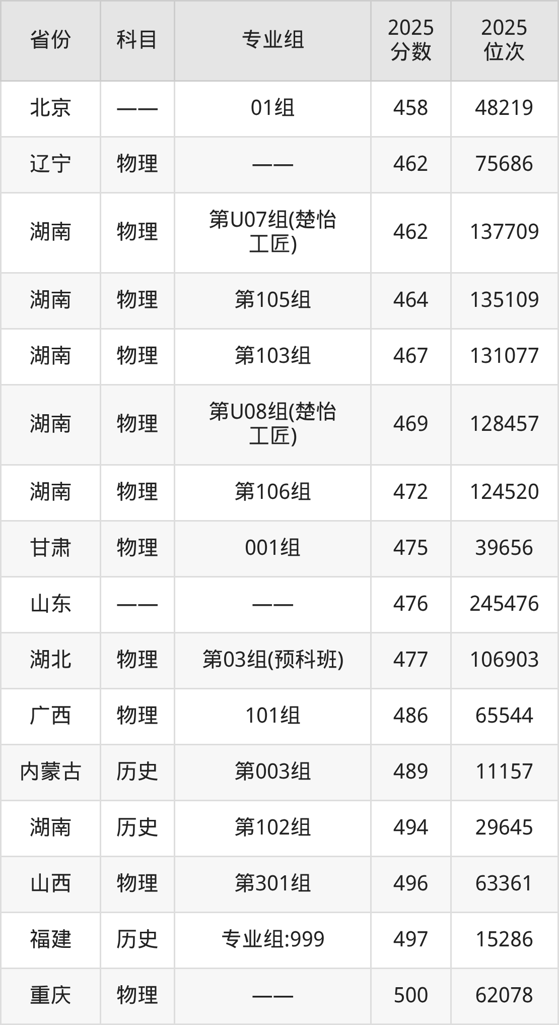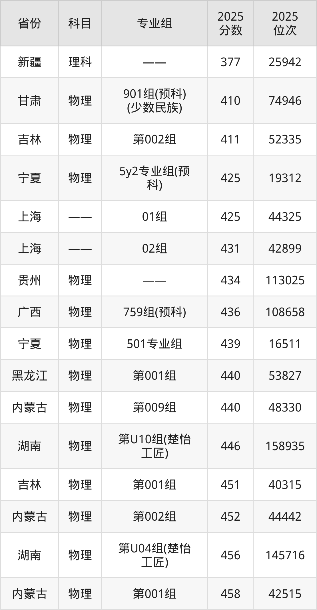 理科:2025年湖南工学院录取最低分是377分(新疆),对应的位次排名是25942名。
