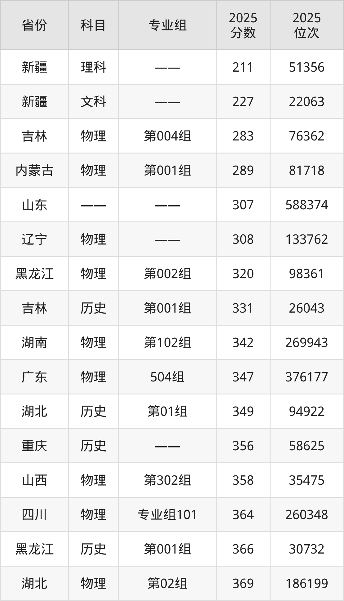 历史类:2025年河北建材职业技术学院录取最低分是331分(吉林),对应的位次排名是26043名。