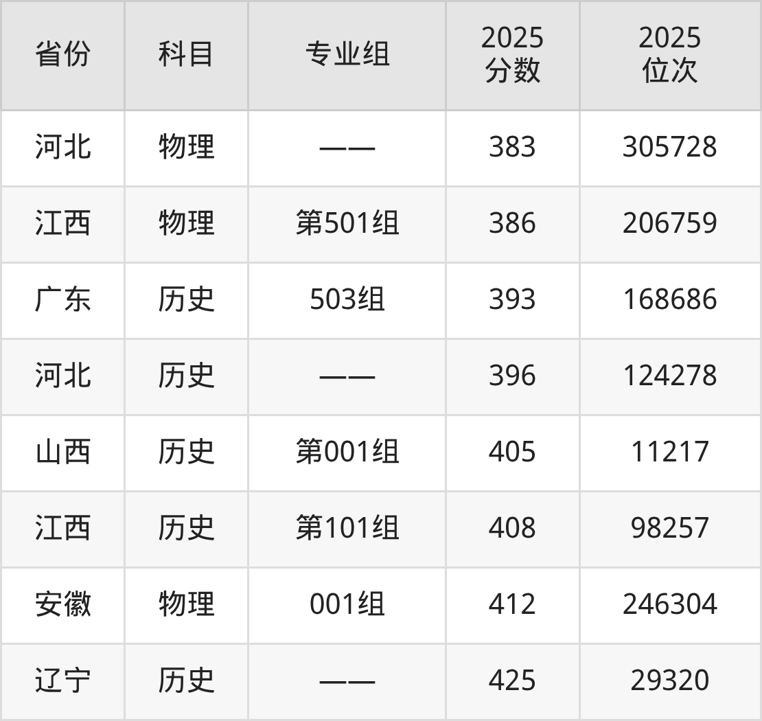 物理类:2025年河北建材职业技术学院省内录取最低分是383分,对应的位次排名是305728名。建议:如果2026年排名超过305728名,那么被该校录取的概率较大。