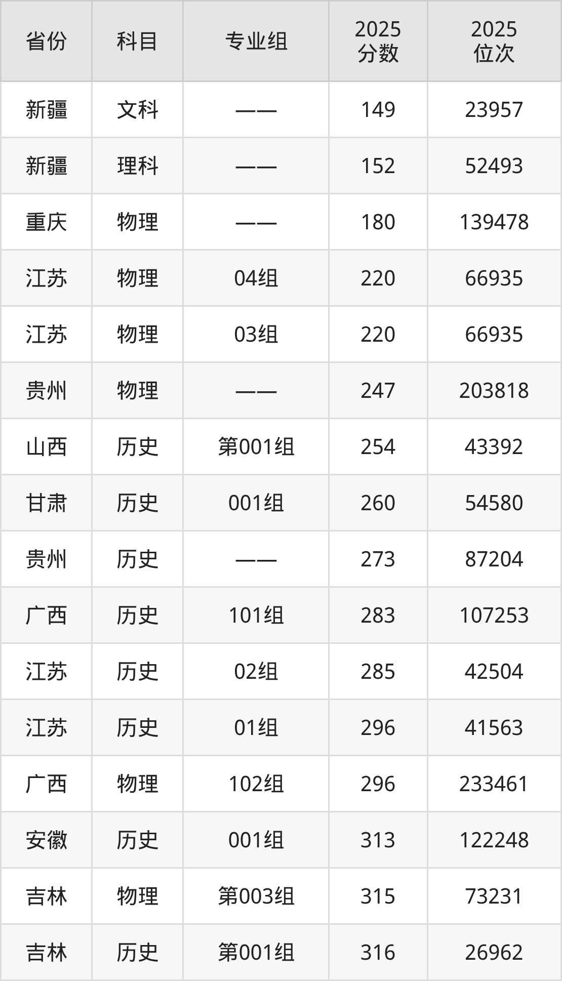 理科:2025年恩施职业技术学院录取最低分是152分(新疆),对应的位次排名是52493名。