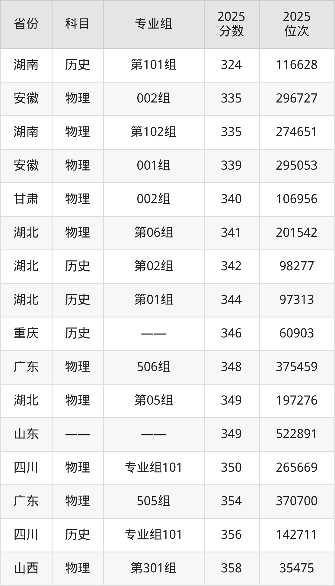 物理类:2025年恩施职业技术学院省内录取最低分是341分,对应的位次排名是201542名。建议:如果2026年排名超过201542名,那么被该校录取的概率较大。