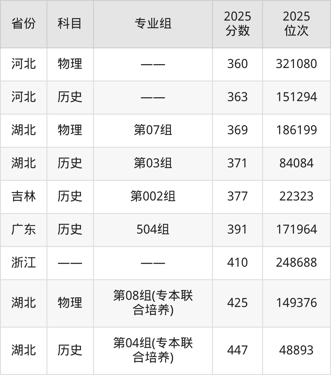 历史类:2025年恩施职业技术学院省内录取最低分是342分,对应的位次排名是98277名。建议:如果2026年排名超过98277名,那么被该校录取的概率较大。