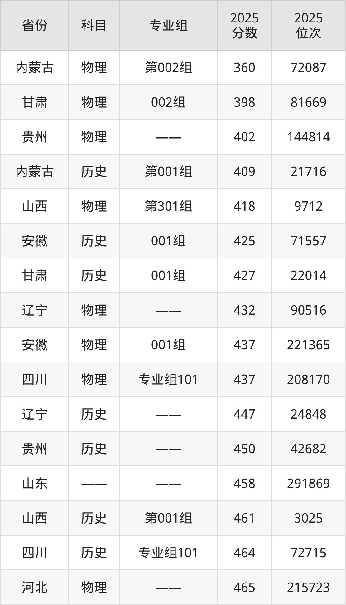 物理类:2025年北京信息职业技术学院录取最低分是360分(内蒙古),对应的位次排名是72087名。