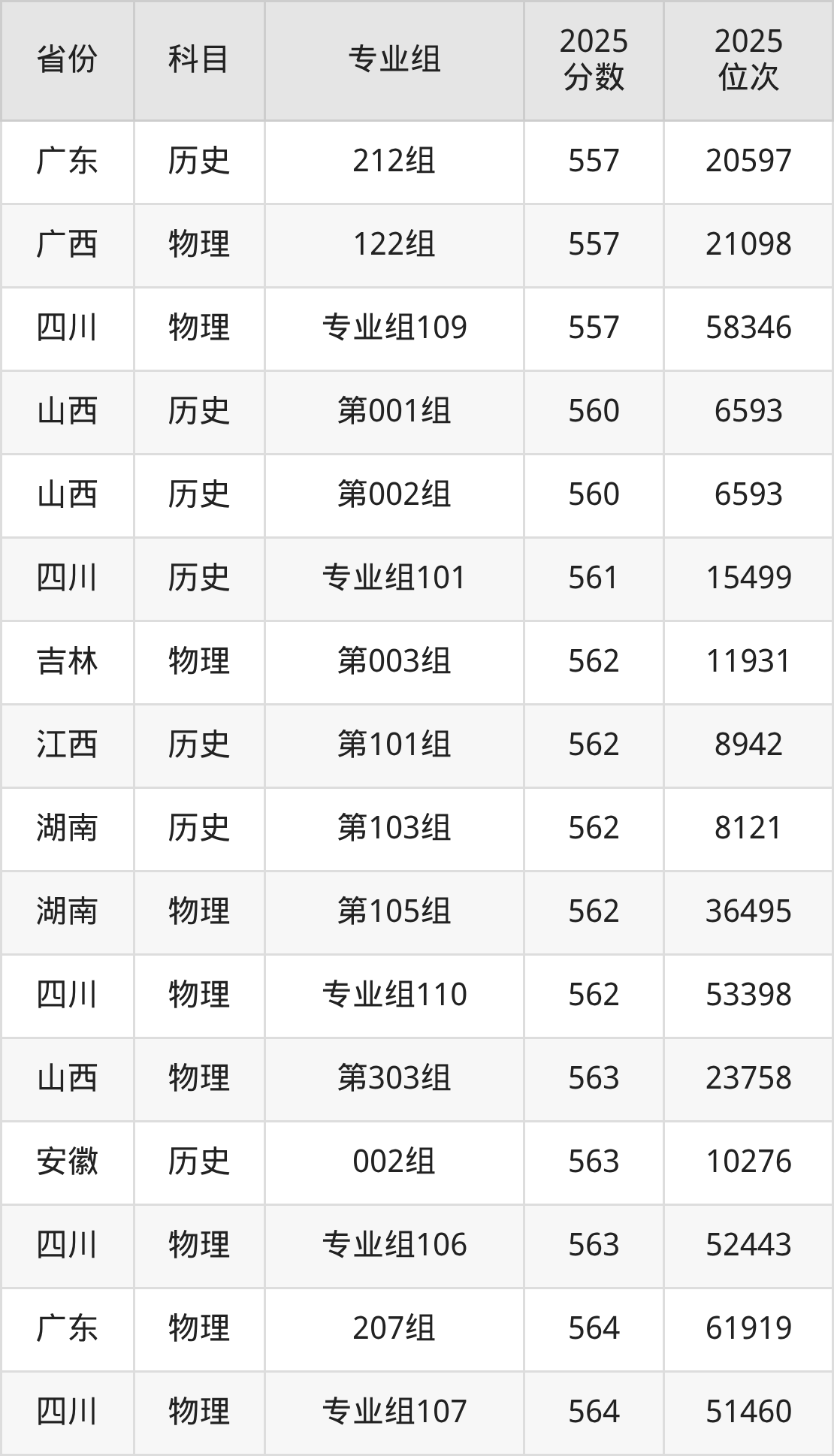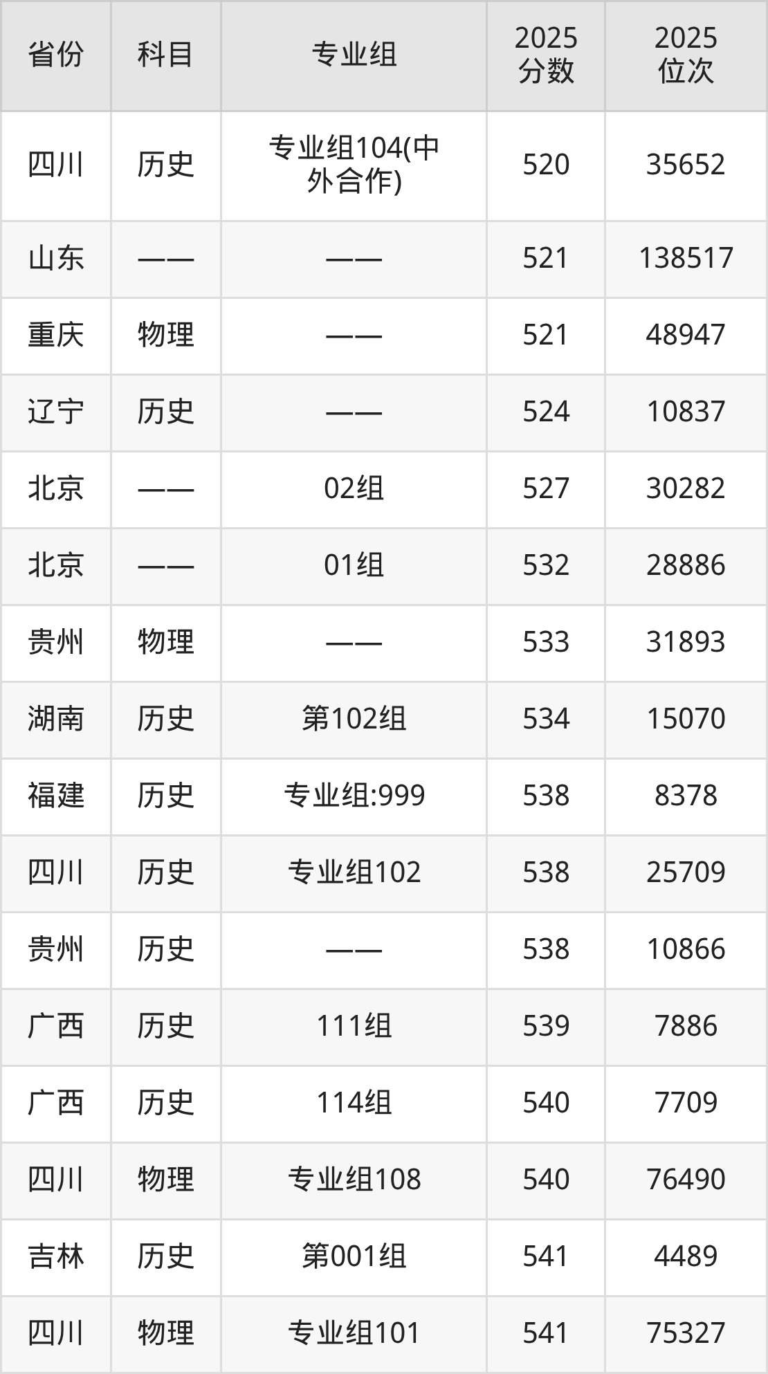 历史类:2025年成都信息工程大学省内录取最低分是520分,对应的位次排名是35652名。建议:如果2026年排名超过35652名,那么被该校录取的概率较大。